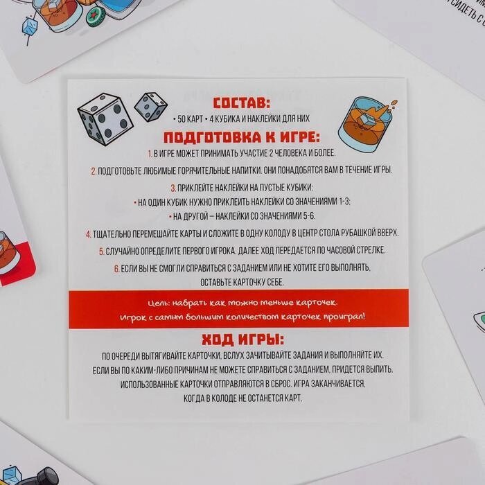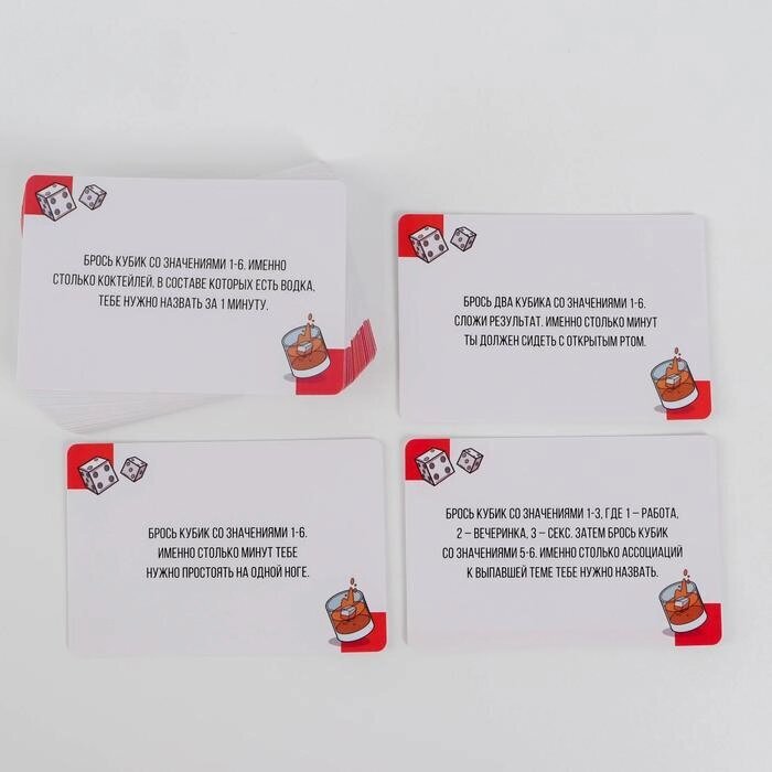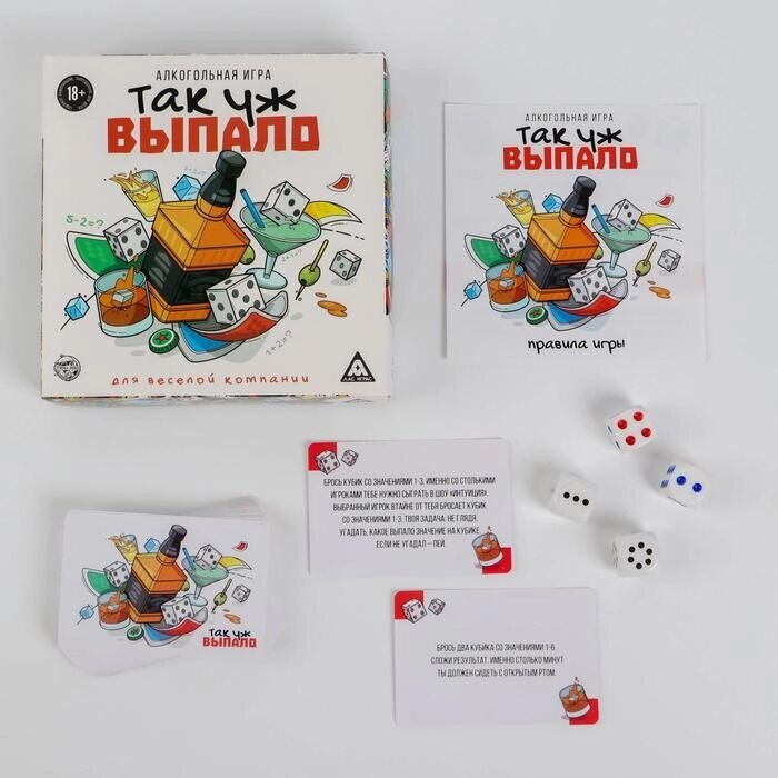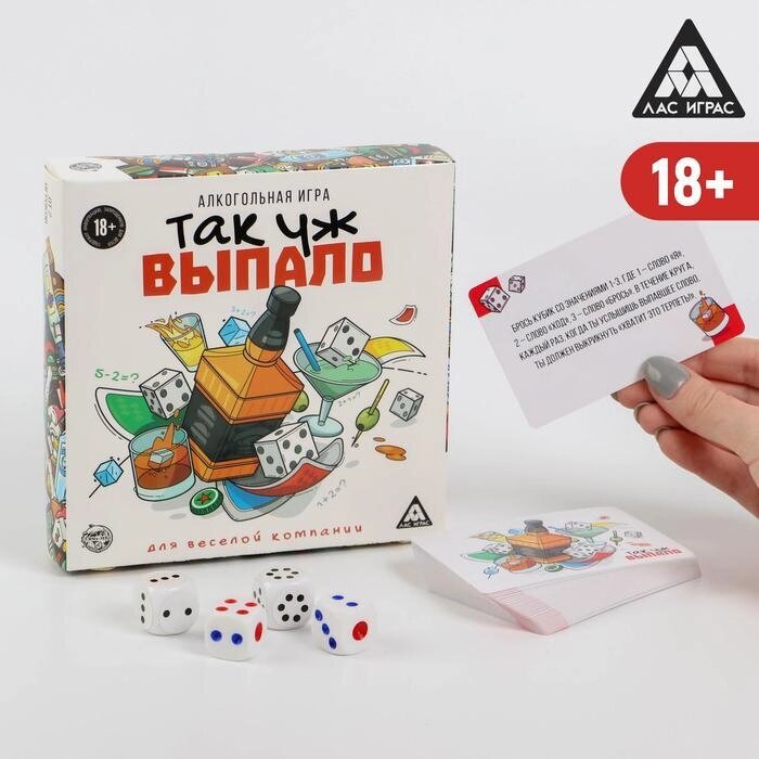 Встретились как-то желание выпить, случайность и хорошее настроение. И что вы думаете? Получилась эта игра! Здесь вам предстоит выполнять задания. А как вы будете это делать, решит бросок кубиков. Если вы справились с заданием — это хорошо. Если нет — придётся выпить. А это ещё лучше! Поэтому скорее собирайте друзей и начинайте веселье.