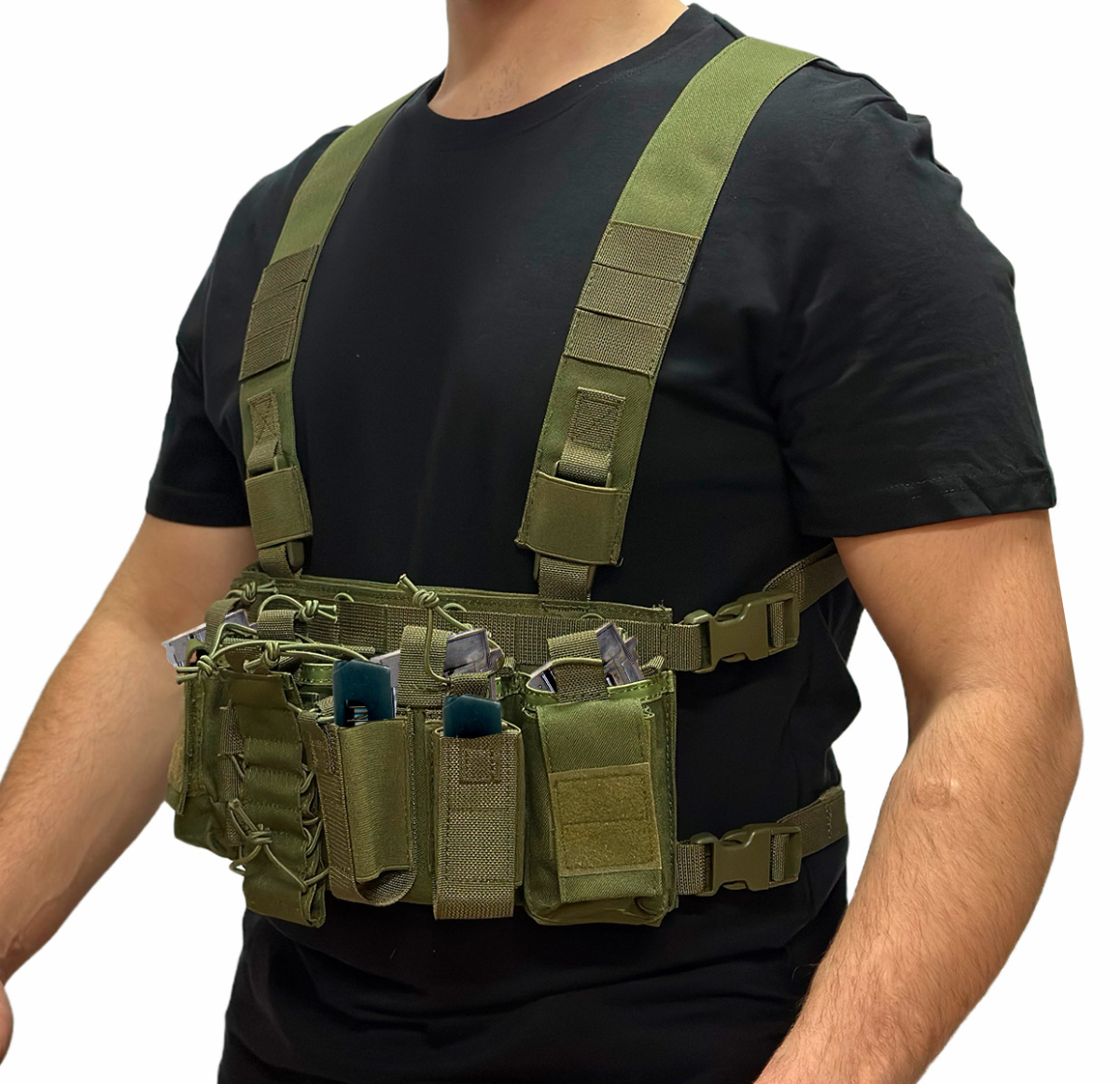 Надежные застежки фастекс позволят оператору моментально сбрасывать разгрузку при необходимости. Модульная лямка и замок с боковой разблокировкой обеспечивают оптимальную безопасность. Мягкие регулируемые лямки обеспечивают комфорт при длительной переноске в боевых условиях. При этом сама разгрузка отличается минимальным весом – всего 550 г.