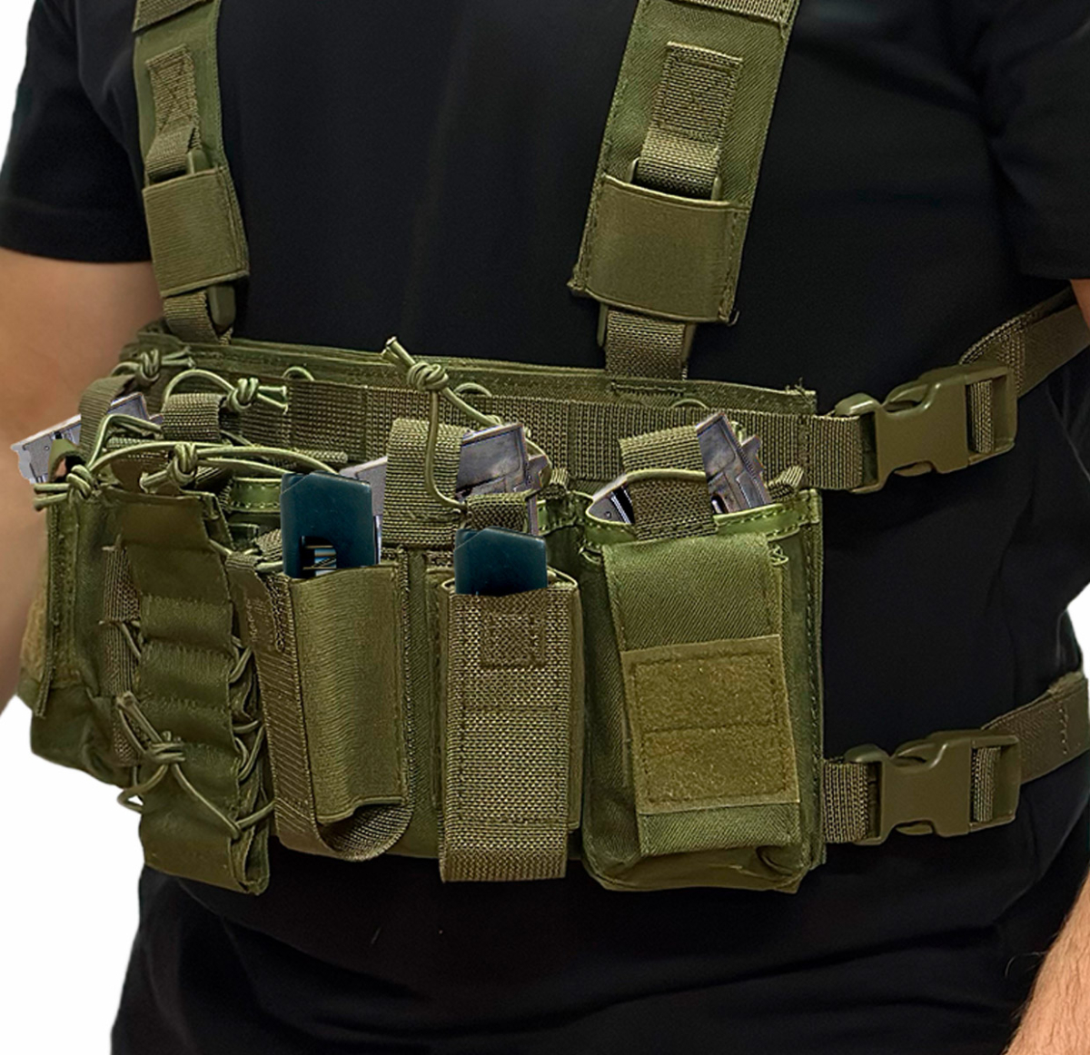 Подсумки подходят для магазинов типа AR, а также для магазинов AK 7,62 x 39 мм и 5,45 x 39. Подсумки под пистолетные магазины универсальны - под все современные модели. Есть слоты для фонарей, рации, компактной тактической аптечки, другого важного снаряжения.