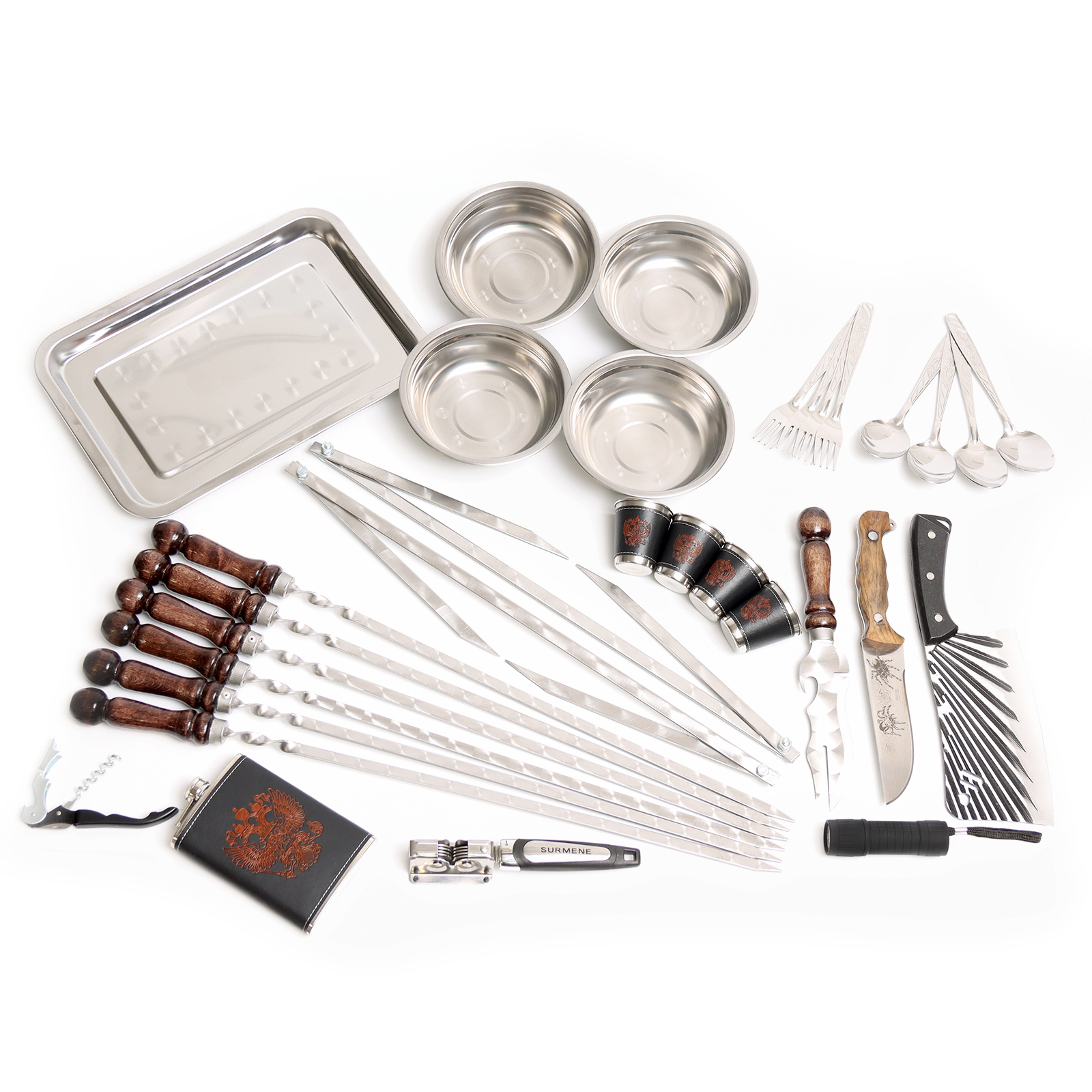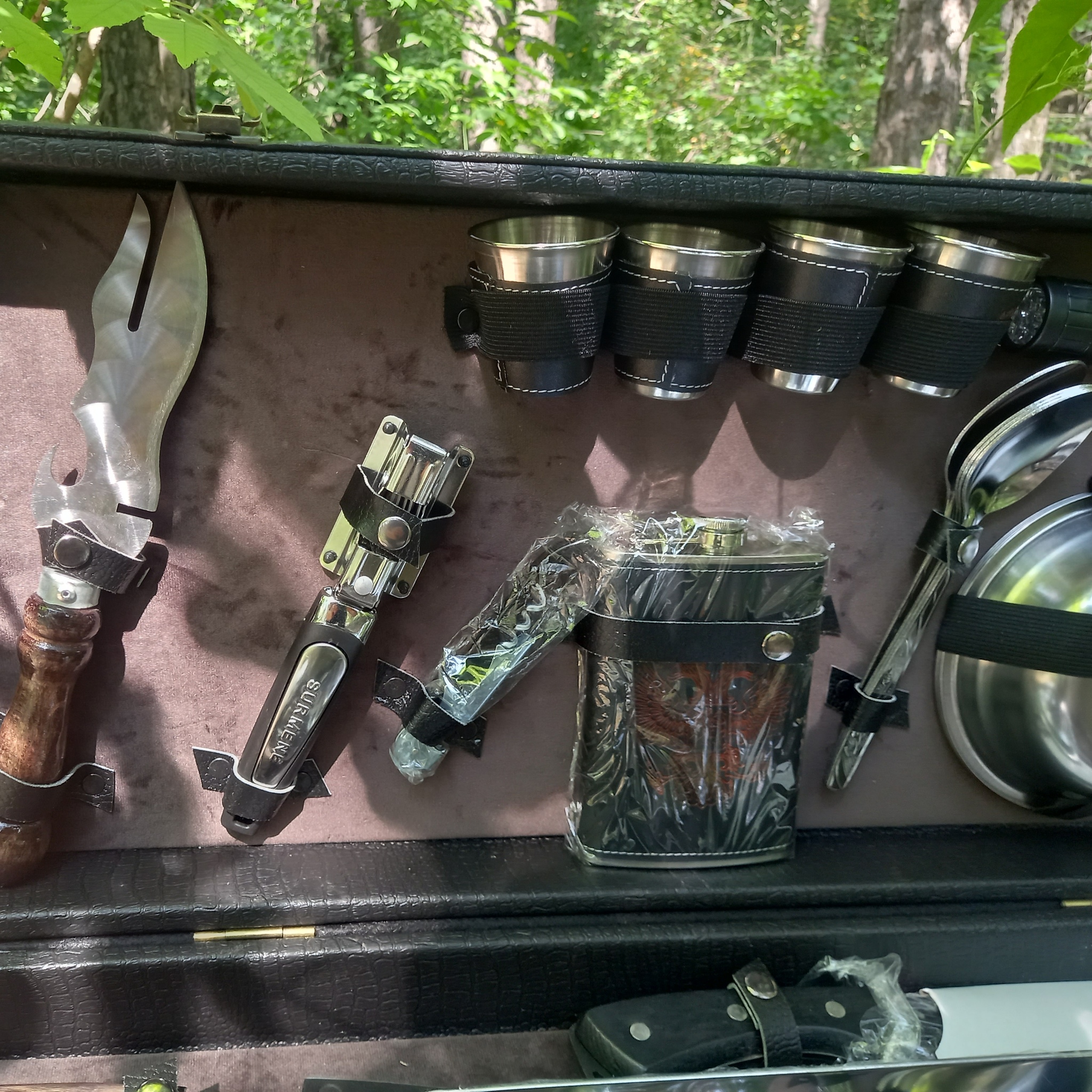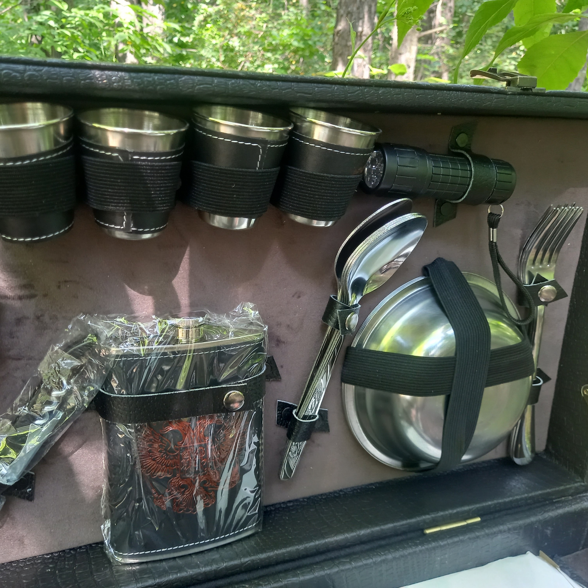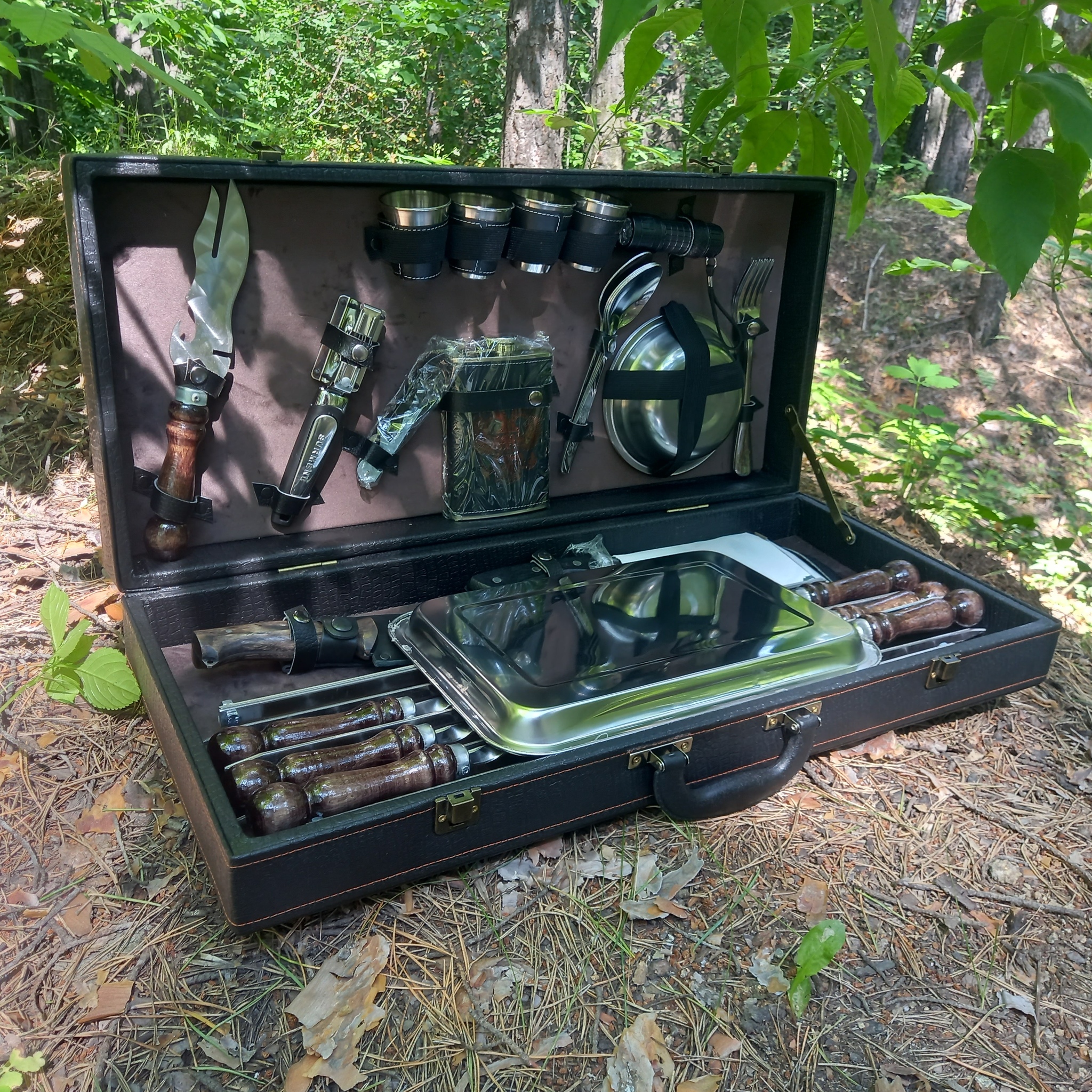 Набор для шашлыка подходит для дачи, пикника, отдыха на природе, туризма, охоты, рыбалки. Чехол может быть использован как походный набор для кемпинга. Чемодан удобно хранить и перевозить.