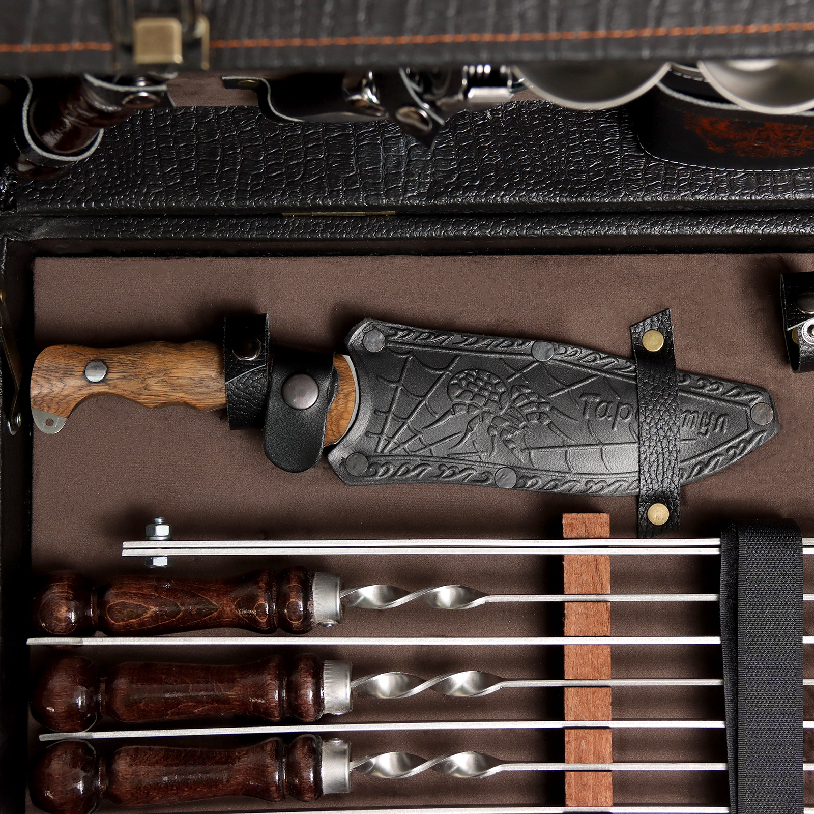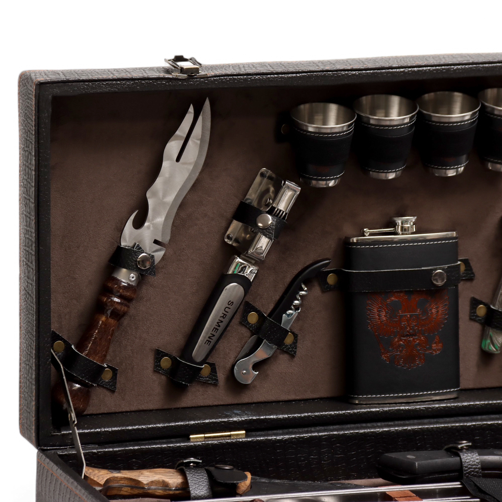 Большой шашлычный набор "Дары Кавказа" кейс из экокожи 32 предмета - прекрасный подарок мужу, другу, начальнику, коллеге, папе на день рождения, 23 февраля, юбилей и просто так.