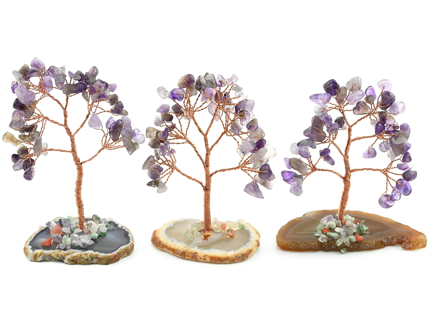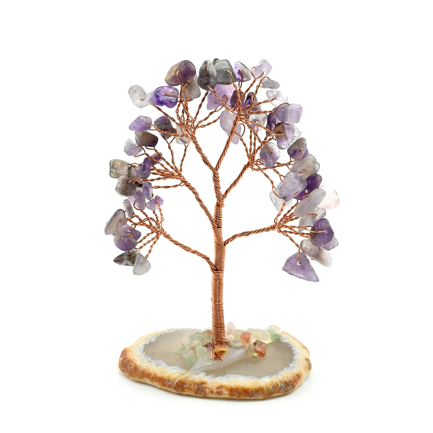Дерево счастья на срезе агата с аметистом 60*35*90мм