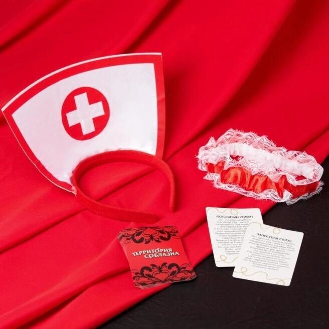 Внутри вас ждут 10 карточек с горячими сценариями ролевых игр. Изучите карточки, выберите подходящие и воплотите написанное в жизнь. Партнёрша может использовать ободок медсестры и подвязку, чтобы добавить образу перчинки.