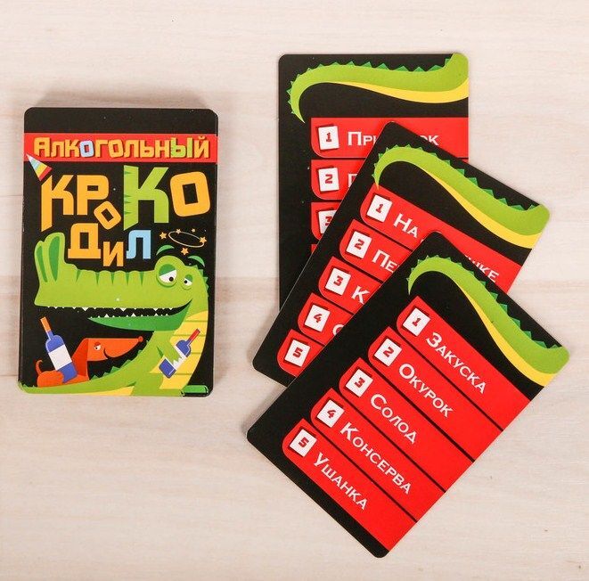 Игроки по очереди вытягивают карточки из колоды, выбирают слова и объясняют их с помощью мимики и жестов, не произнося при этом ни слова. Кто угадает — забирает карточку себе, а остальные выпивают.