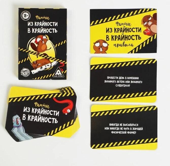 В этих фантах вас то и дело будет бросать из крайности в крайность. Съесть сырое страусиное яйцо или огромного таракана? Никогда не высыпаться или иметь тонну лишнего веса? Что-то из этого точно придётся выбрать. А задача других участников — догадаться, какую из крайностей вы предпочли.