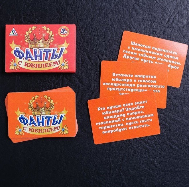 Всё, что понадобится для игры — это накрытый стол, отличное настроение и набор фантов. По очереди тяните карточки и выполняйте задания — веселье не заставит себя ждать! Говорите комплименты имениннику, танцуйте, поздравляйте, пойте песни — эти и другие развлечения ждут вас на сегодняшнем празднике!