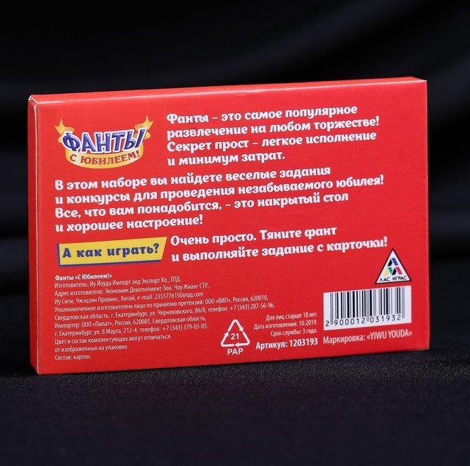 Как провести праздник так, чтобы он запомнился надолго? Откройте набор фантов «С юбилеем!», и мечты станут реальностью. Он послужит отличным развлечением для именинника и всех присутствующих!