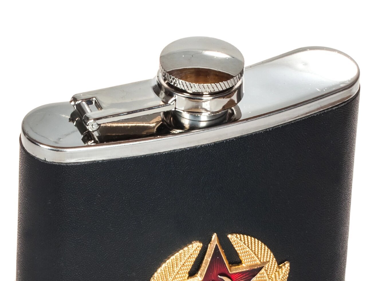 Нержавеющая фляжка "Советская Армия" обтянутая кожей черного цвета, в качестве украшения использован шильд в виде кокарды рядового состава СА. Спешите купить армейские фляжки по приемлемой цене, оплату и доставку можно осуществить разнообразными способами.