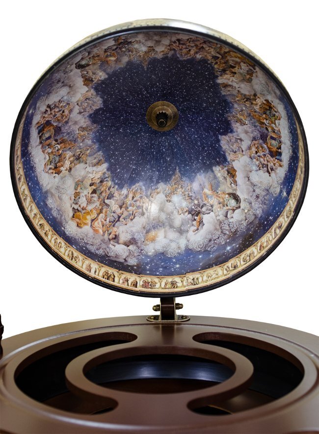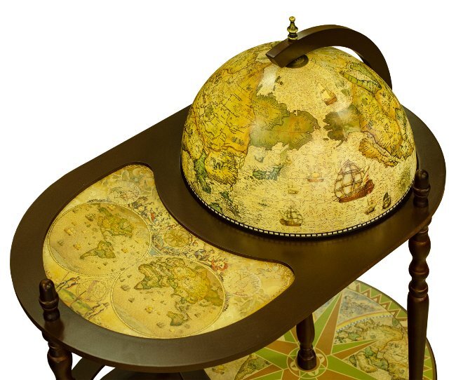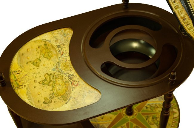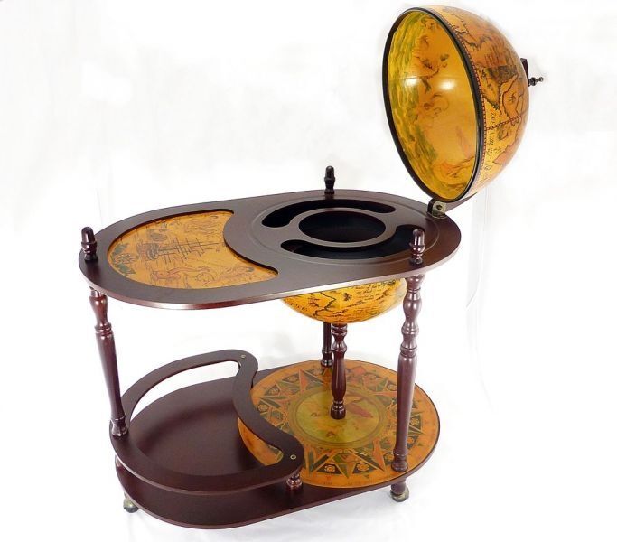 Рядом с таким предметом легко предаваться грезам о дальних странах, невероятных приключениях и страстной любви горячей незнакомки. Поспособствует этому и содержимое глобуса - он идеально приспособлен для хранения бутылок с прохладительными или спиртными напитками. При этом, увидев его в закрытом виде, вы и не догадаетесь о веселом содержимом.