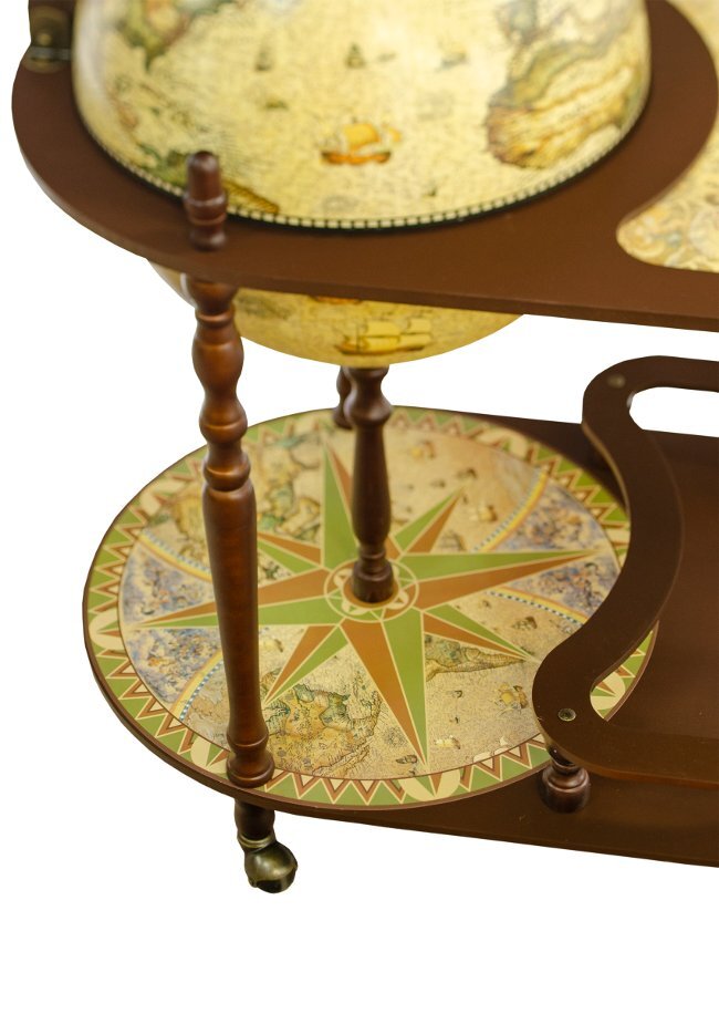 Глобус-бар напольный d 45, на фигурных ножках JuFeng JF-MG-45003-RN - великолепный подарок. Он выполнен с большим мастерством. Основной материал - дерево. Поверхность глобуса покрыта картой эпохи Великих географических открытий. Глобус-бар - мечта романтика и любителя приключений.