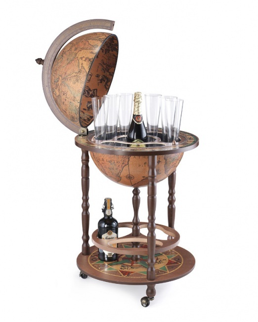 Дизайнеры говорят, что стиль интерьера начинается с мелочей. Например, с таких как бар в гостиной, где собирается вся ваша семья или же близкие вам люди. Но итальянская кампания «Zoffoli» сделала не просто бар. Эта вещь не оставит вас равнодушным. Глобус, на котором изображена земля 16 века, расположен на подставке из темного дерева, на нижней полке которой вы видите розу ветров. И да, это и есть место для ваших любимых бутылок вина, коньяка или же виски. Причем вместимость данной «миниатюрной Земли» может вас порадовать – три до трех бутылкок по 0.7 литра. Размеры: диаметр сферы 40 см.