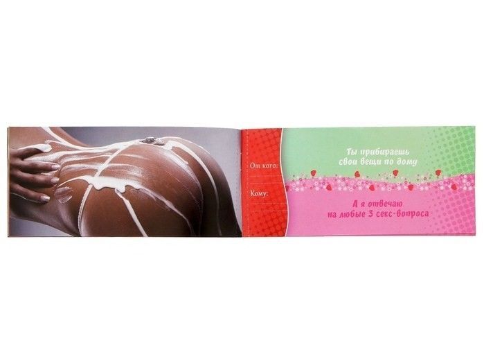 Теперь все домашние дела будут в радость! Ведь после вас ожидает романтическое и эротическое вознаграждение! Дарите горячие купоны, и вы найдёте новый источник сексуального вдохновения.