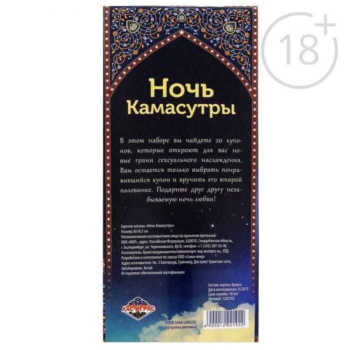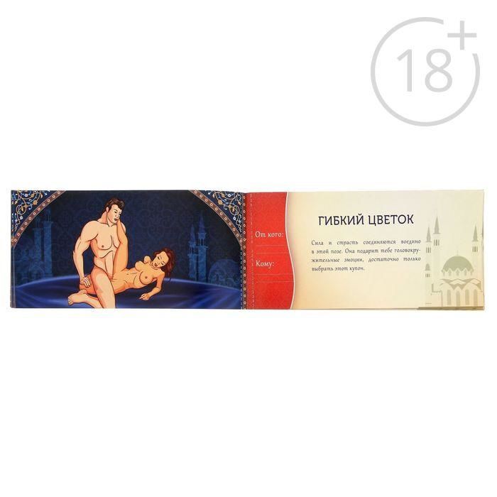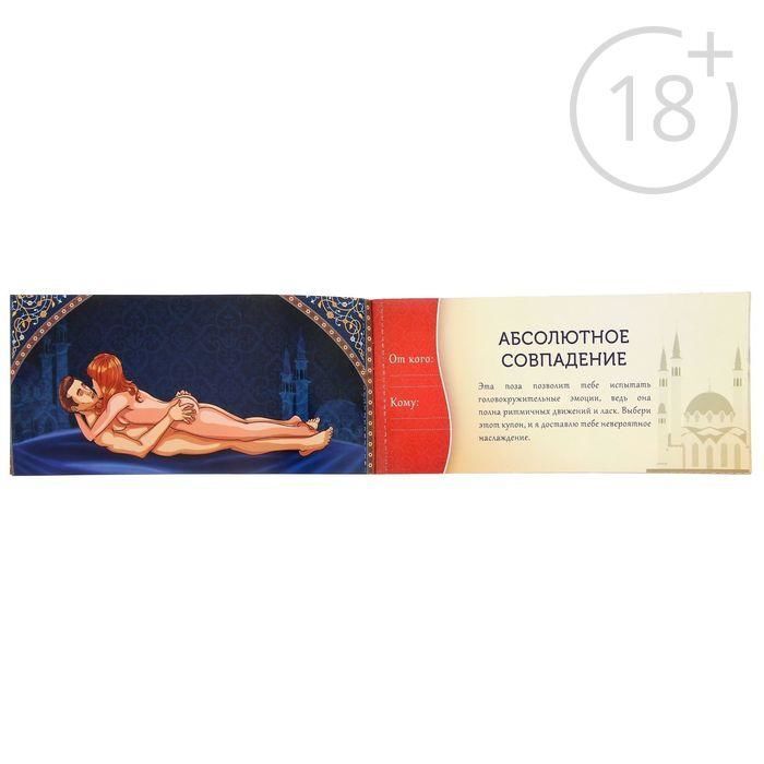 Внутри вы найдёте купоны с подробным и горячим описанием сексуальных поз, которые откроют вам новые грани получения удовольствия. Отрывайте горячий купон, вручайте его второй половинке и предвкушайте самую бурную ночь в своей жизни!