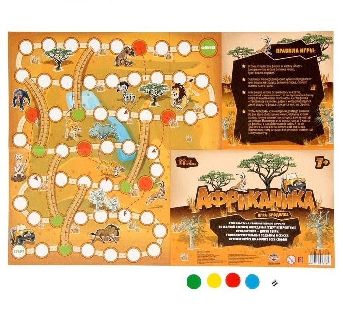 Отправляйтесь в увлекательное путешествие по самому жаркому континенту на Земле — Африке! Бродилка создана по мотивам всемирно известной игры «Змеи-лестницы». Вас ждут невероятные приключения в пустыне и встреча с дикими животными. Путешествуйте всей семьёй!