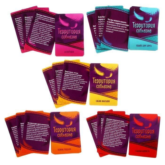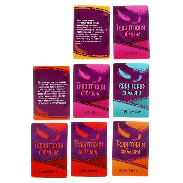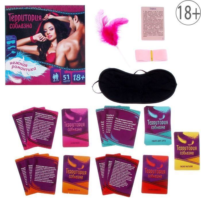 Игра содержит 50 карточек с заданиями разного уровня сложности. Для начала воспользуйтесь колодой «Узнайте друг друга», она откроет много секретов партнера. С колодой «Смелые фантазии» возбудите воображение откровенными размышлениями на пикантные темы. С карточками «Нежные поцелуи» узнайте новые техники и способы доставить друг другу удовольствие, и тогда можете переходить к колодам «Ласкай меня» и «Сладкая близость» — они послужат достойным финалом романтической ночи. В набор входят приятные аксессуары, которые смогут разнообразить Ваши ласки.