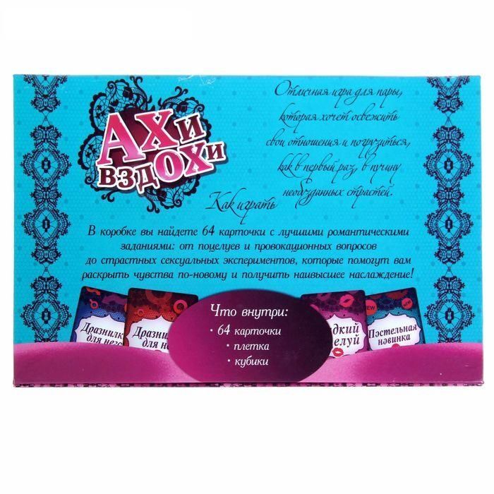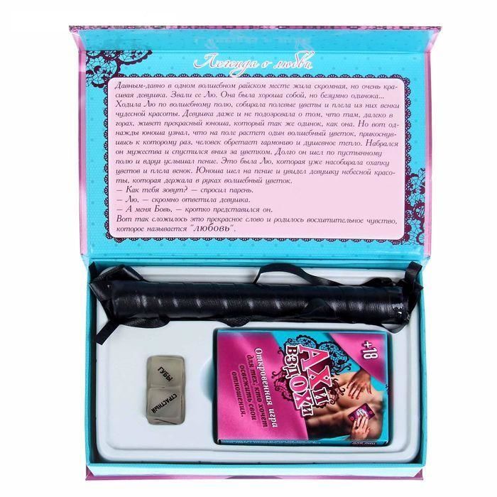 Хотите испытать новые чувства и погрузиться в ураган страстей? Попробуйте откровенную, провоцирующую игру «Ахи вздохи» в подарочной книге-шкатулке с плеткой и кубиками, которые разнообразят ваши сексуальные фантазии.