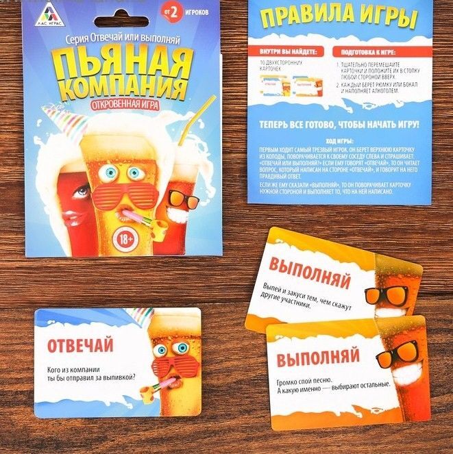 По очереди вытягивайте карточки и выбирайте, что будете делать — честно отвечать на вопрос или выполнять задание с карты.