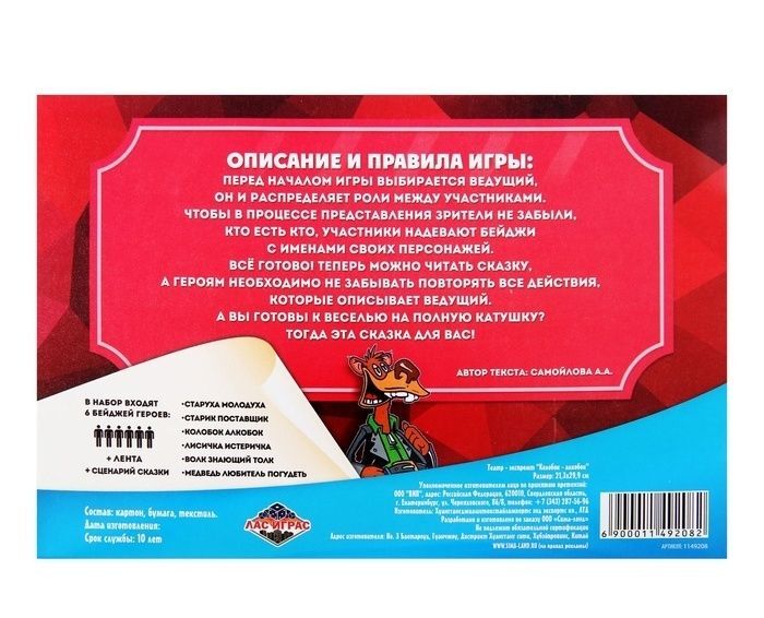 Примерьте уморительные образы, разыграйте целый спектакль по уникальному сценарию сказки «Колобок» на новый лад и… не забывайте закусывать!
