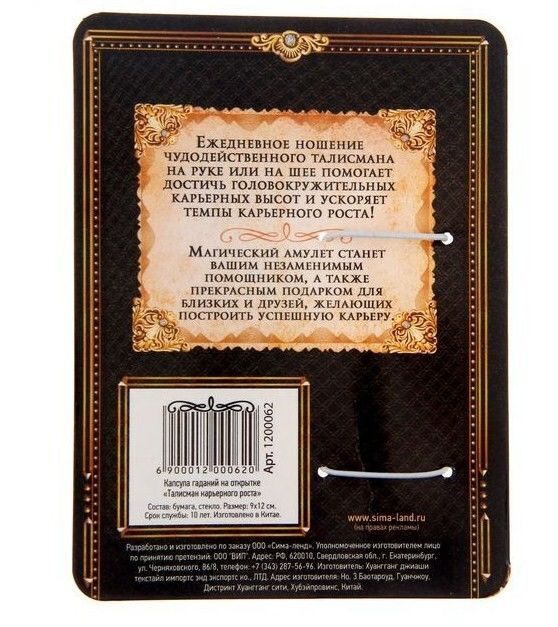 Капсула гаданий на открытке "Талисман карьерного роста"