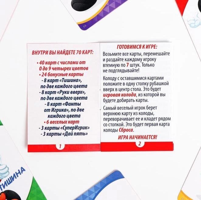 Ещё в игре есть специальные бонусные карты, которые сделают её ещё увлекательнее, ведь соперникам предстоит добирать карты, пропускать ходы и даже выполнять фанты.