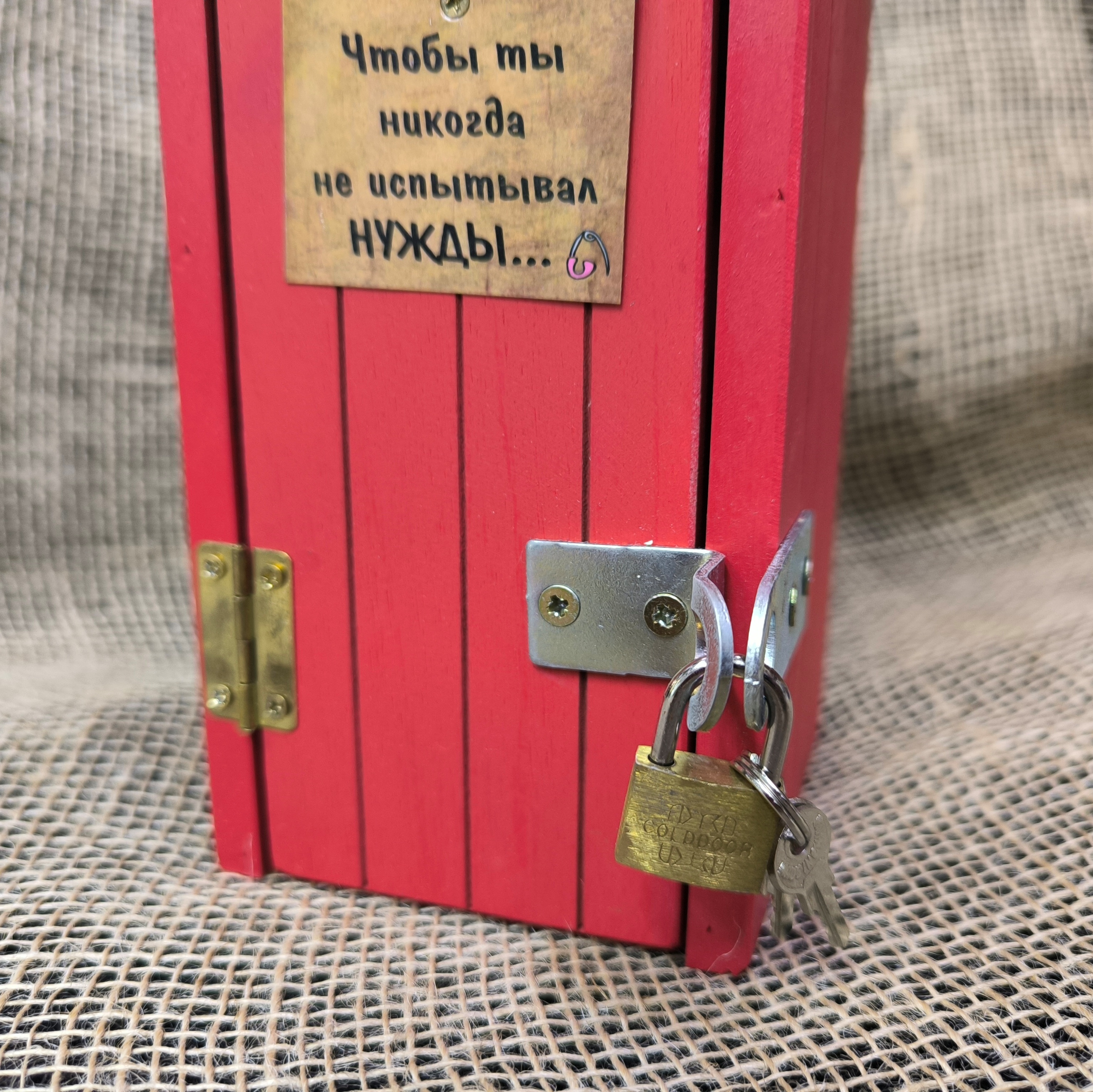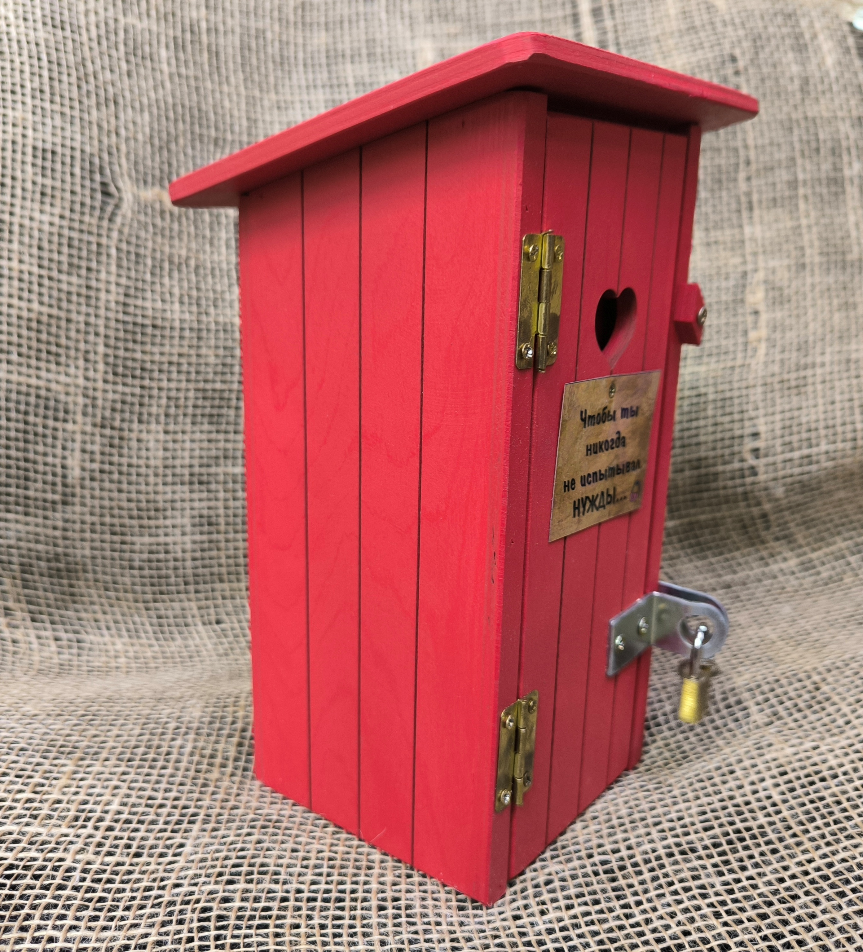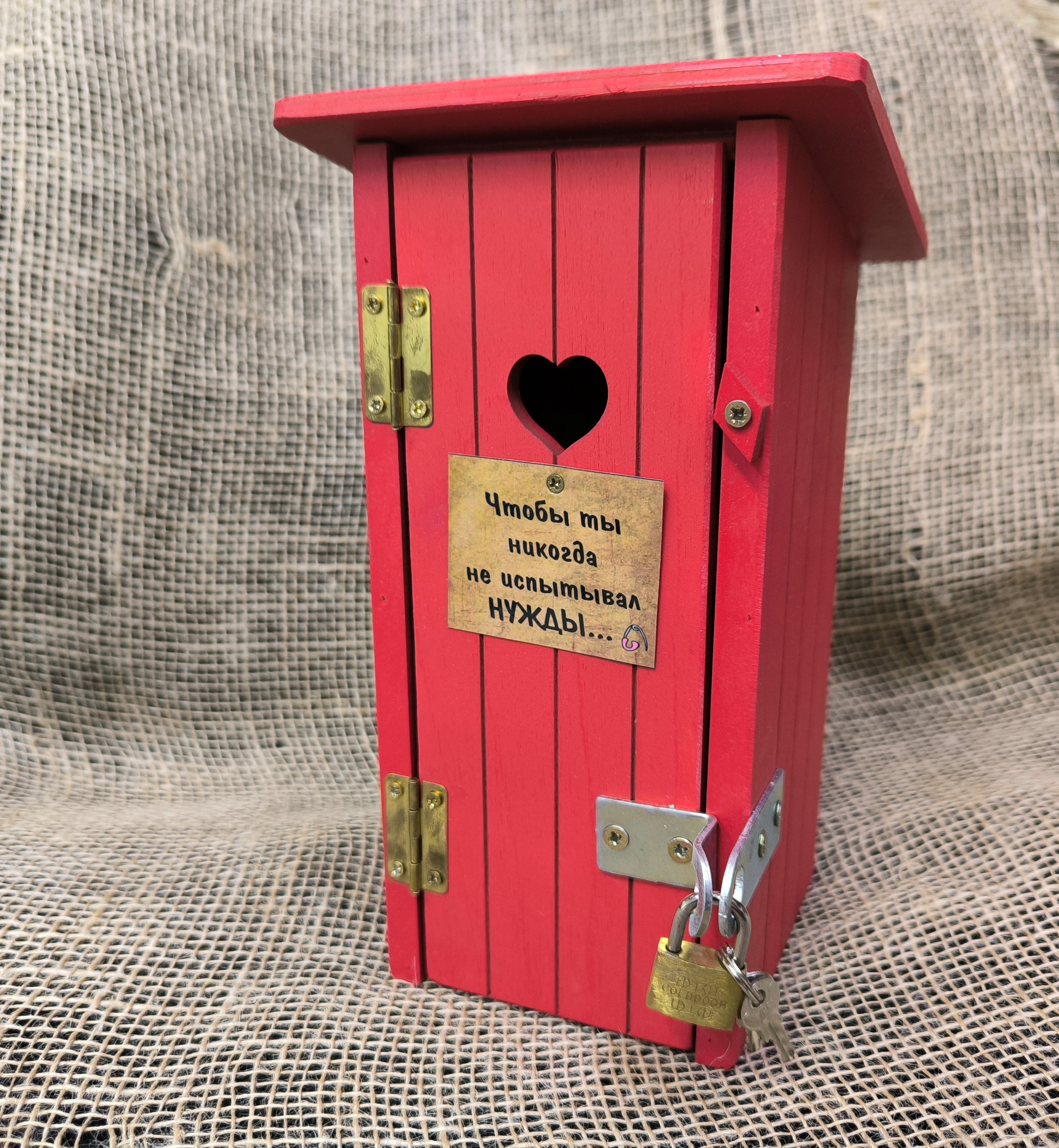 Креативный сувенир копилка в форме деревенского туалета "Чтоб ты не испытывал нужды" из дерева.