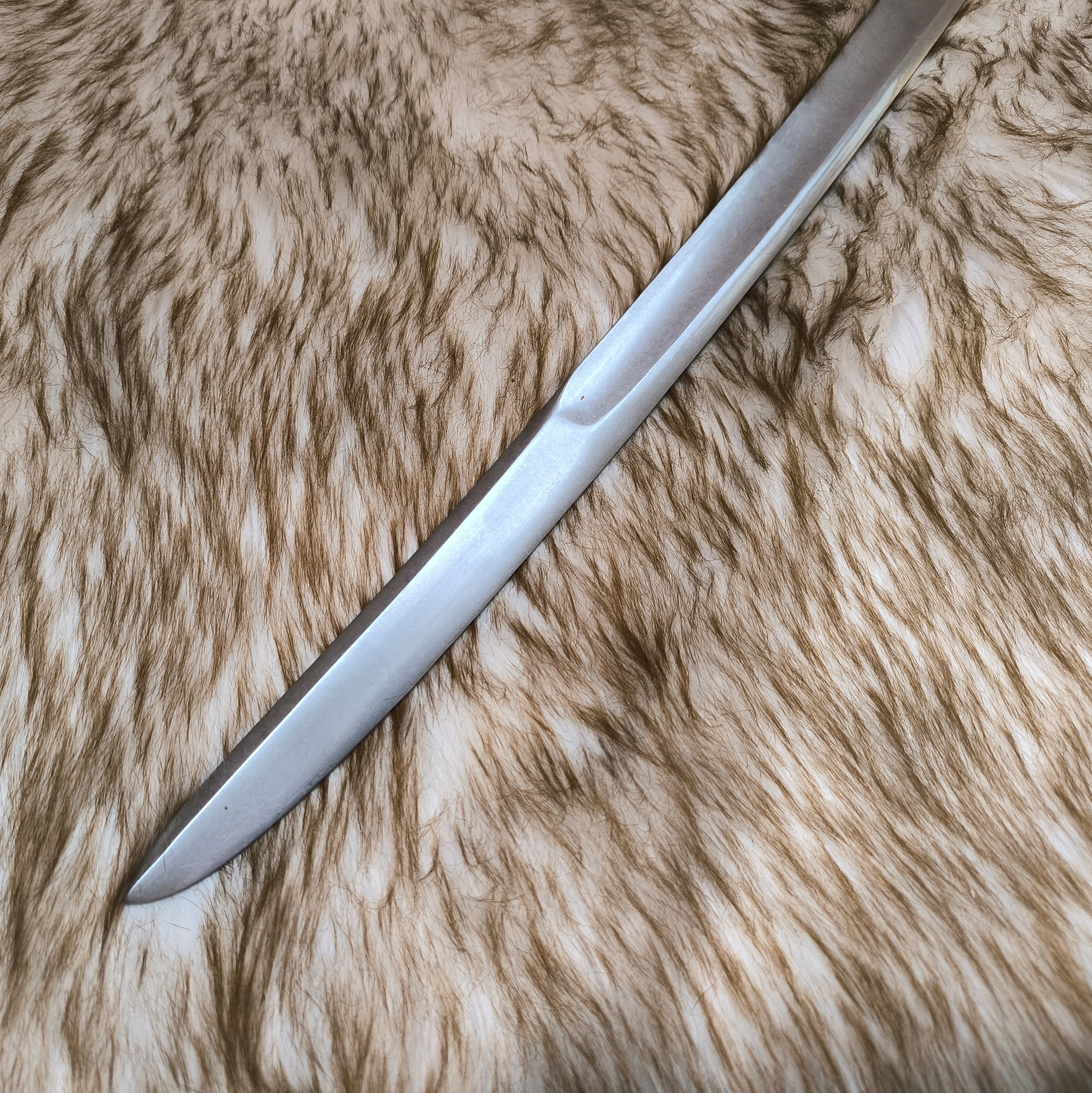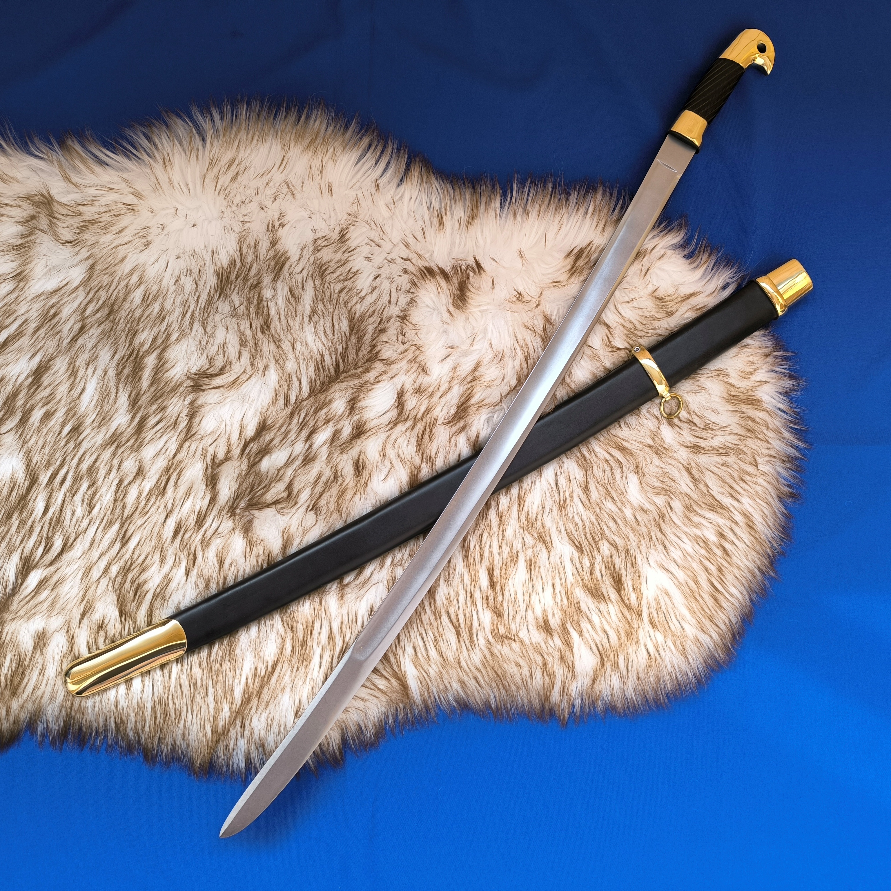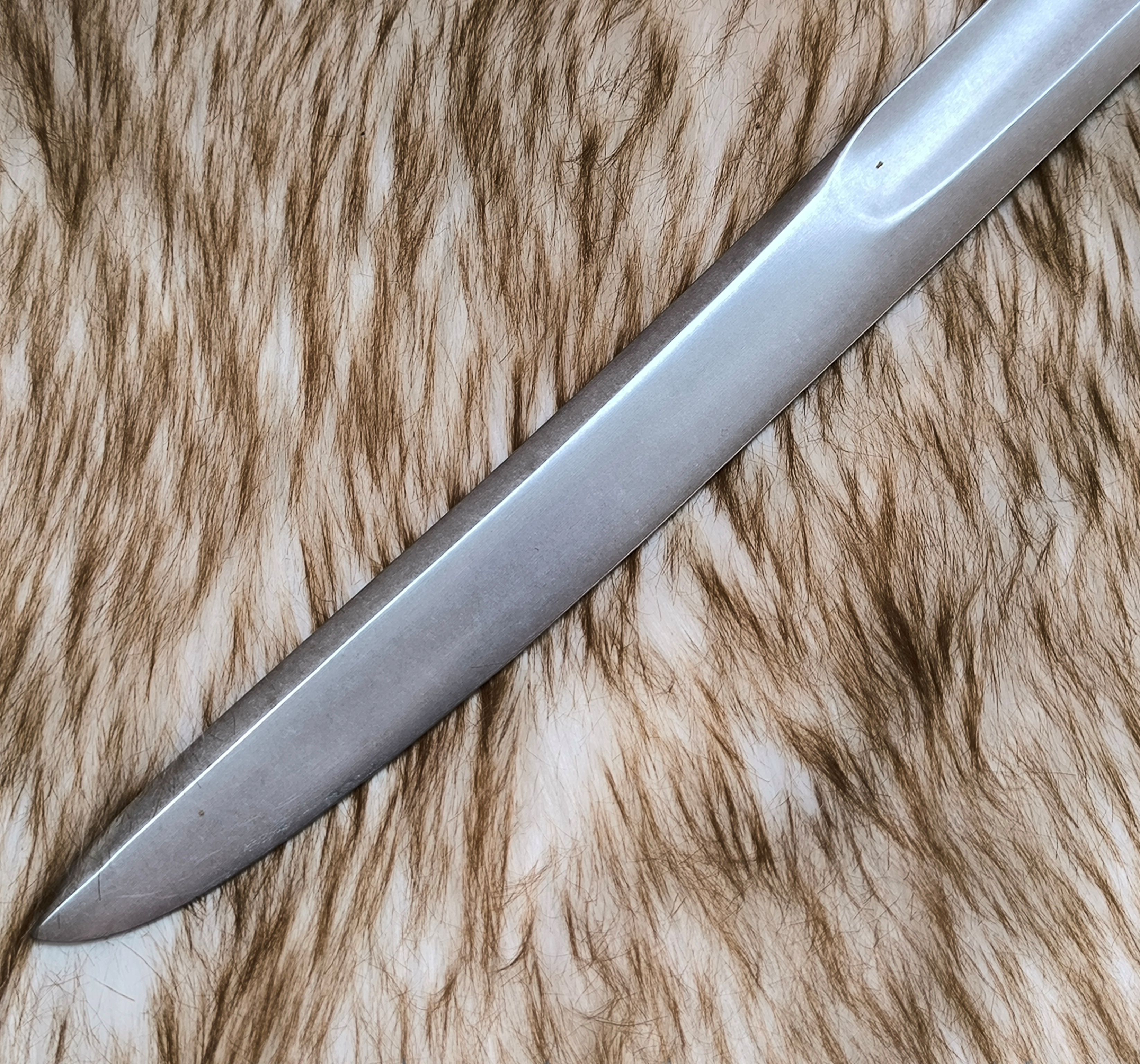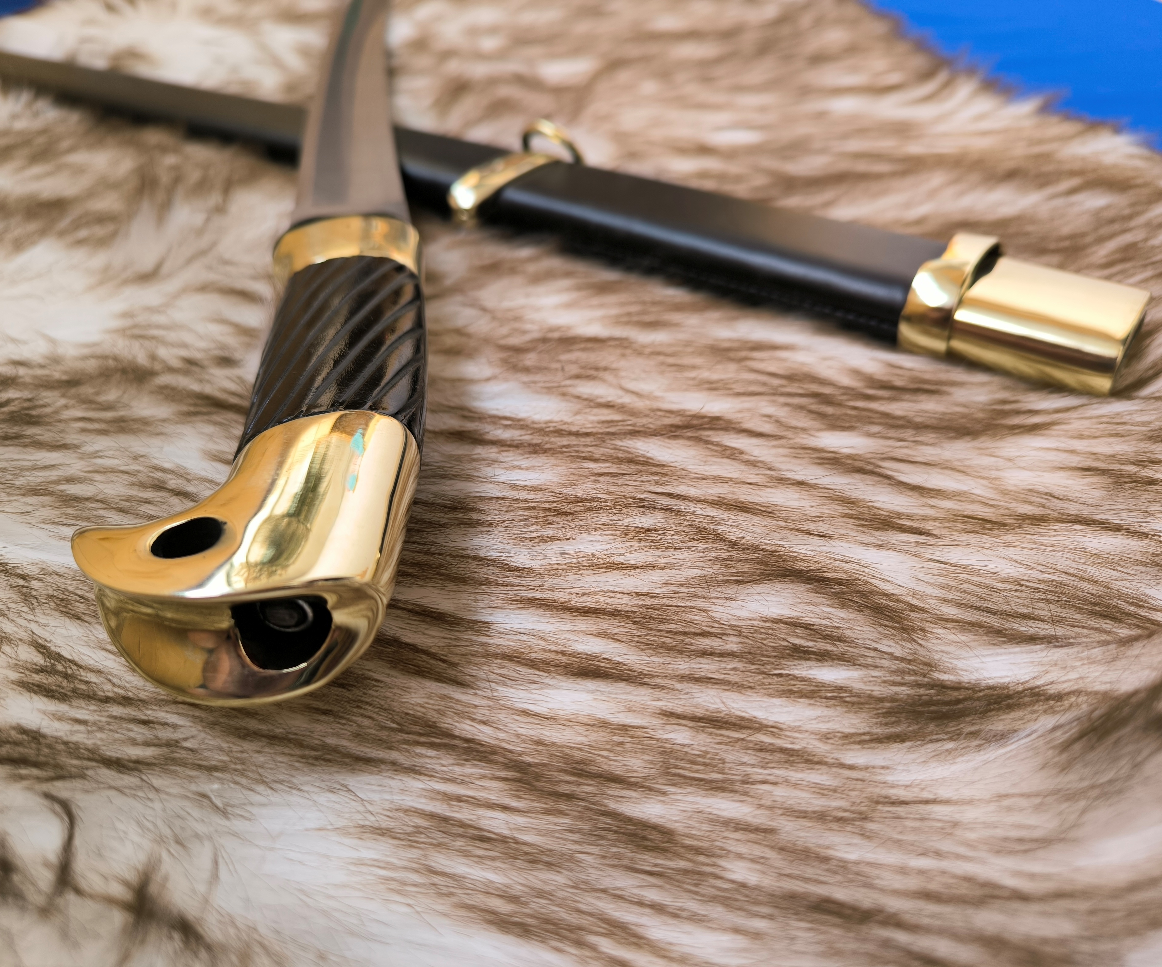 Хвостовик клинка, проходящий через всю рукоять, является цельнокованым и закрепляется снаружи гайкой. Рукоять выполнена из дерева и дополнена латунными приборами.