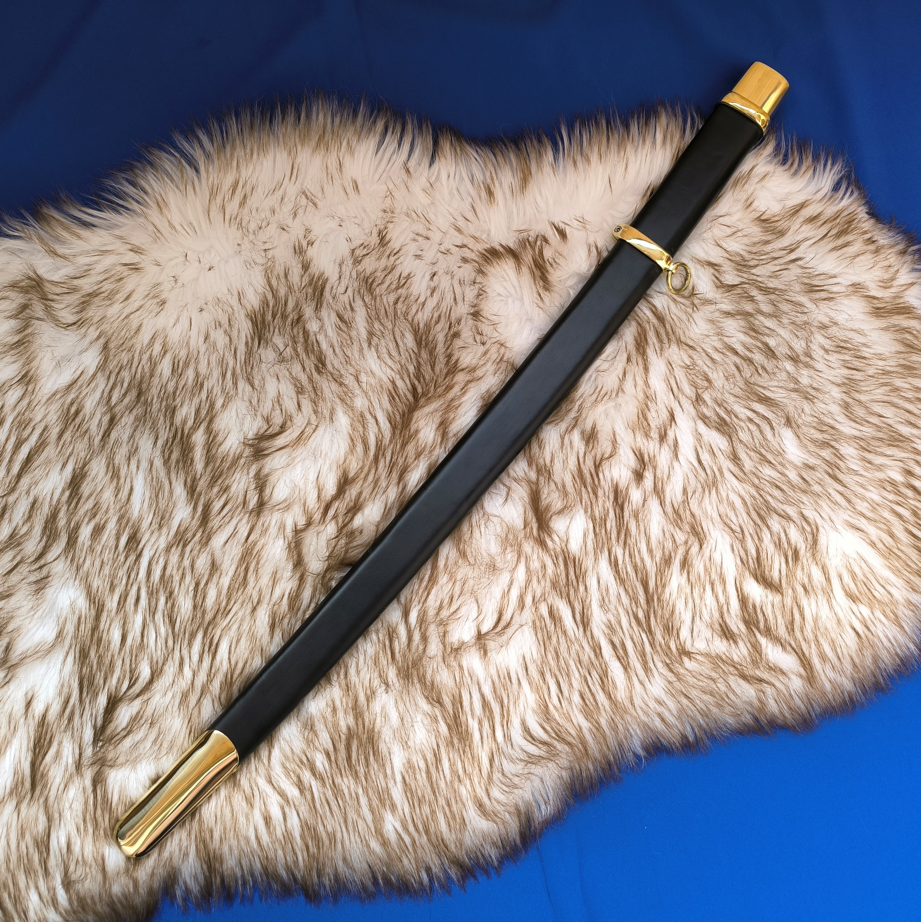 Ножны деревянные, обтянуты кожей. Имеющиеся на них приборы также выполнены из латуни.