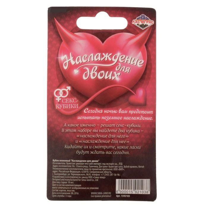 Один кубик подскажет место, где вы сможете предаться страсти, а второй — позу, в которой вы достигнете наивысшего наслаждения. Будет горячо!