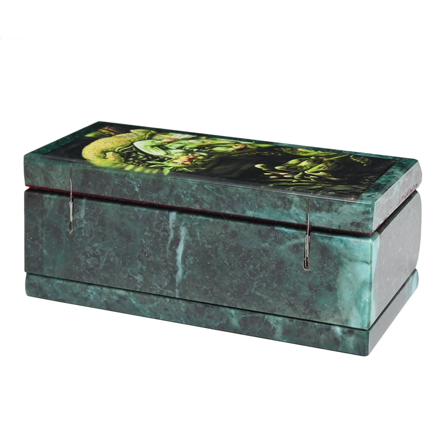 Ларец изгатовлен по специальной технологии из натурального змеевика и фотографии под стеклом.