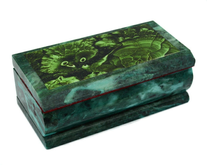 Ларец из змеевика с бархатом иллюстрацией под малахит 145*70*60мм