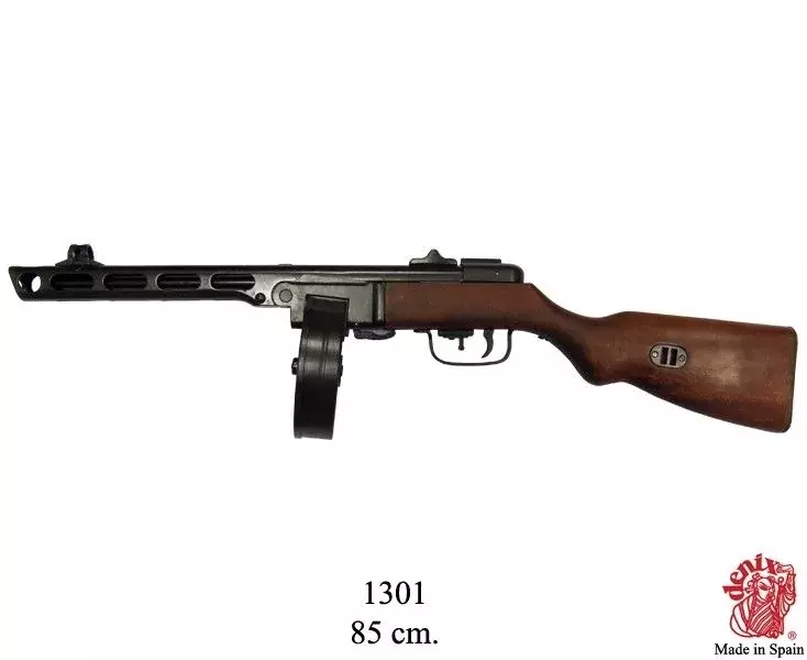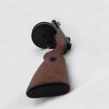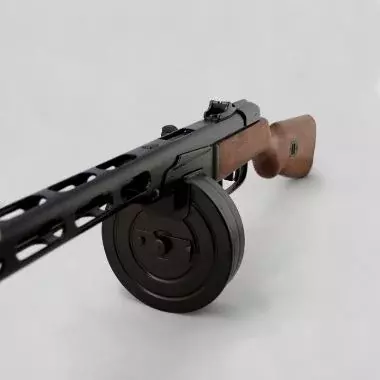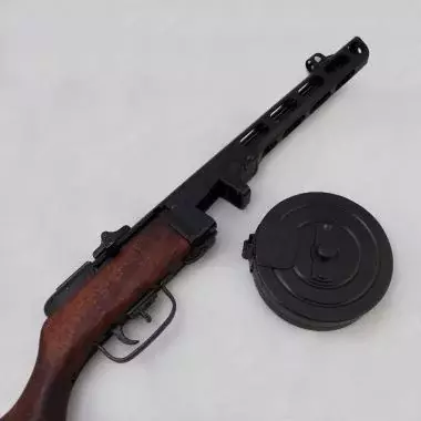 ППШ-41 (Пистолет-Пулемет Шпагина), разработанный Георгием Шпагиным, представлял собой автоматический пистолет-пулемет с магазинным питанием и отдачей, стрелявший с открытого затвора. Он использовал патроны Токарева 7,62х25 и имел магазины в виде барабана на 71 патрон или изогнутые магазины на 35 патронов, со скорострельностью 900 выстр/мин. Он также имел шарнирную ствольную коробку для легкой разборки и чистки.