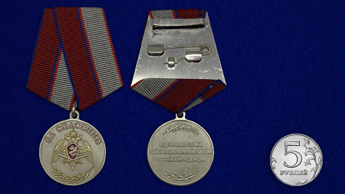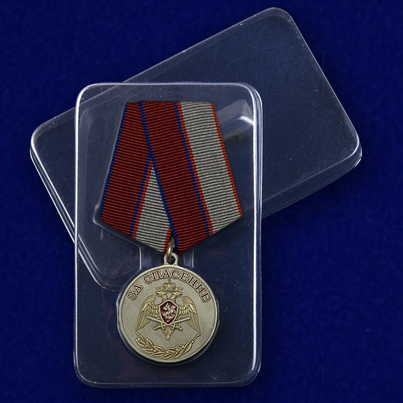 Купить медаль Росгвардии "За спасение" можете онлайн по самой выгодной цене. Качество изготовления безупречное! Качественная медаль из латуни. Покрытие – холодная эмаль. Традиционный диаметр 32 мм. Крепление – булавочный зажим. Пятиугольная колодка обтянута муаровой лентой. Пластиковый футляр для хранения в комплекте.