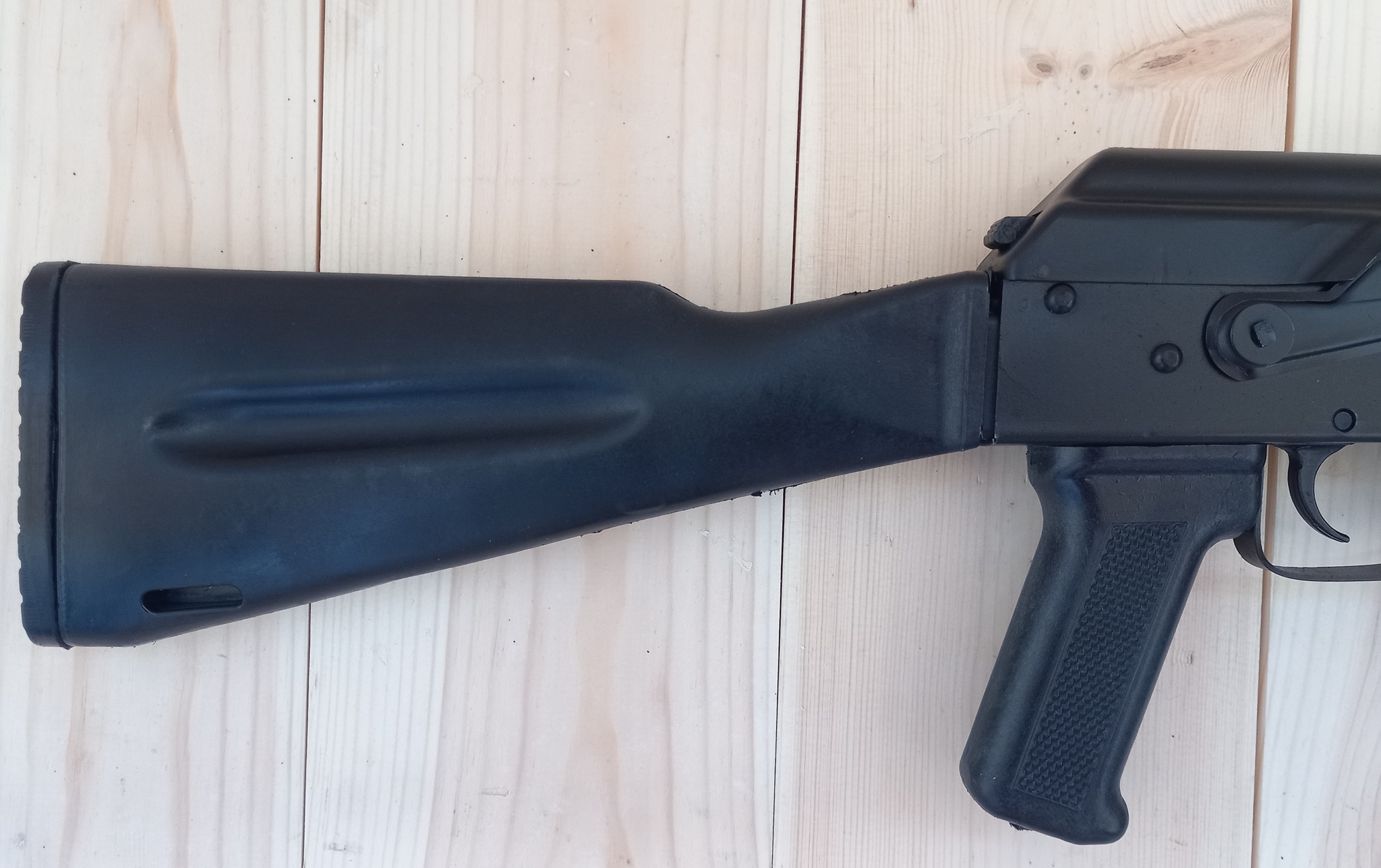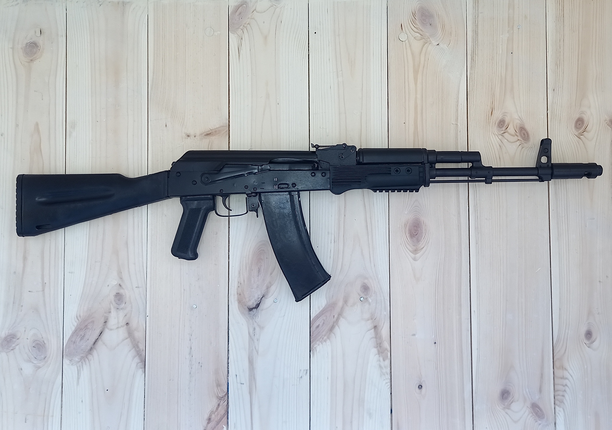 Макет массово-габаритный автомата Калашникова АК-74 с наличием стационарного пластикового приклада. Используется в качестве учебного пособия. В комплекте с макетом поставляется магазин, который представляет собой болванку (то есть имеет визуальное сходство), но его невозможно снаряжать учебными патронами.