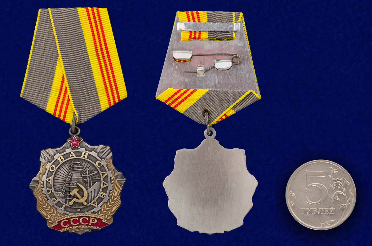 Орден «Трудовой Славы» 3 степени, муляж которого вы можете приобрести в магазине Кирасир был учрежден в 1984 году, Указом Президиума Верховного Совета СССР.