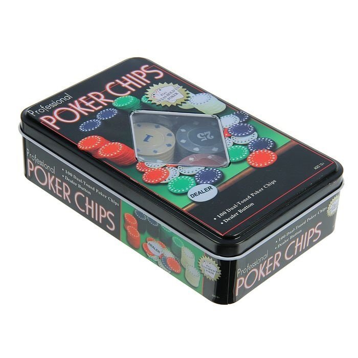Набор для покера Professional Poker Chips: 100 фишек с номиналом, фишка дилера, металлическая коробка