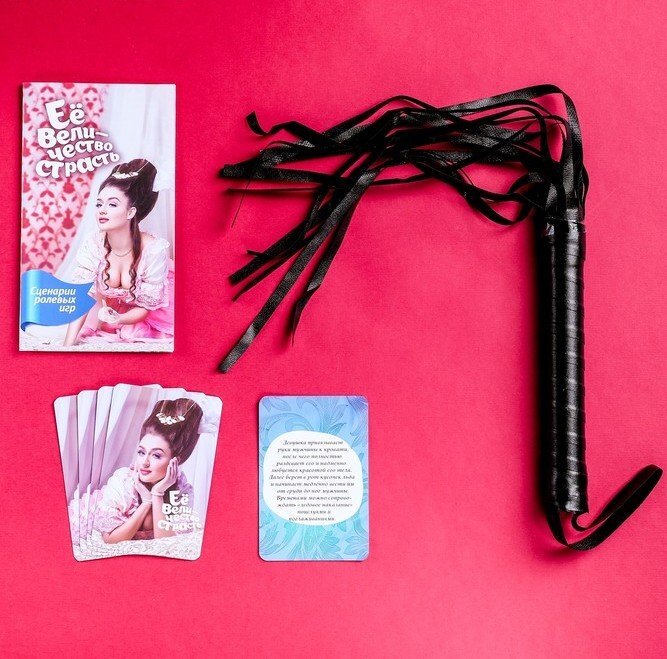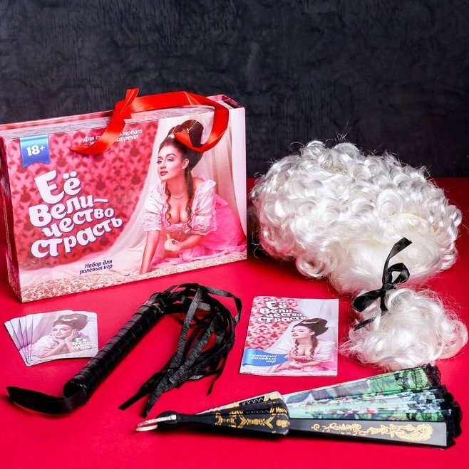 Величественность, грация и уверенность в себе – это качества истинной императрицы. Ощутите все прелести её игривой, страстной жизни. Фантазируйте и приказывайте, войдя в роль с помощью парика и веера. Используйте карточки-наказания, а в помощь вашим изящным шалостям будет плёточка.