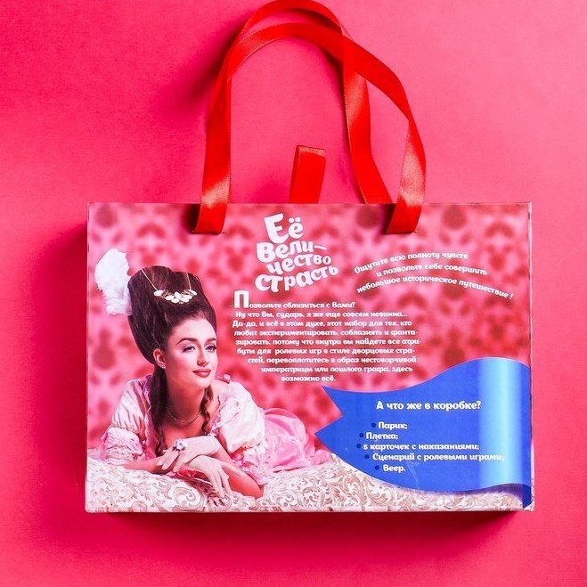 Такой набор в яркой эксклюзивной упаковке с ручками по достоинству оценят ваши друзья и знакомые. Также он отлично подойдёт в качестве подарка, который придётся по вкусу ценителям соблазнения.
