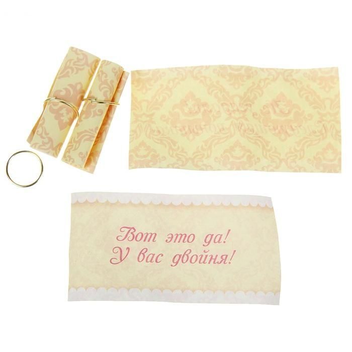В комплекте -баночка с неподражаемым авторским дизайном, в которой сохраняется 30 предсказаний, пожеланий, или советов, завёрнутых в трубочку и украшенных малюсеньким золотым колечком.