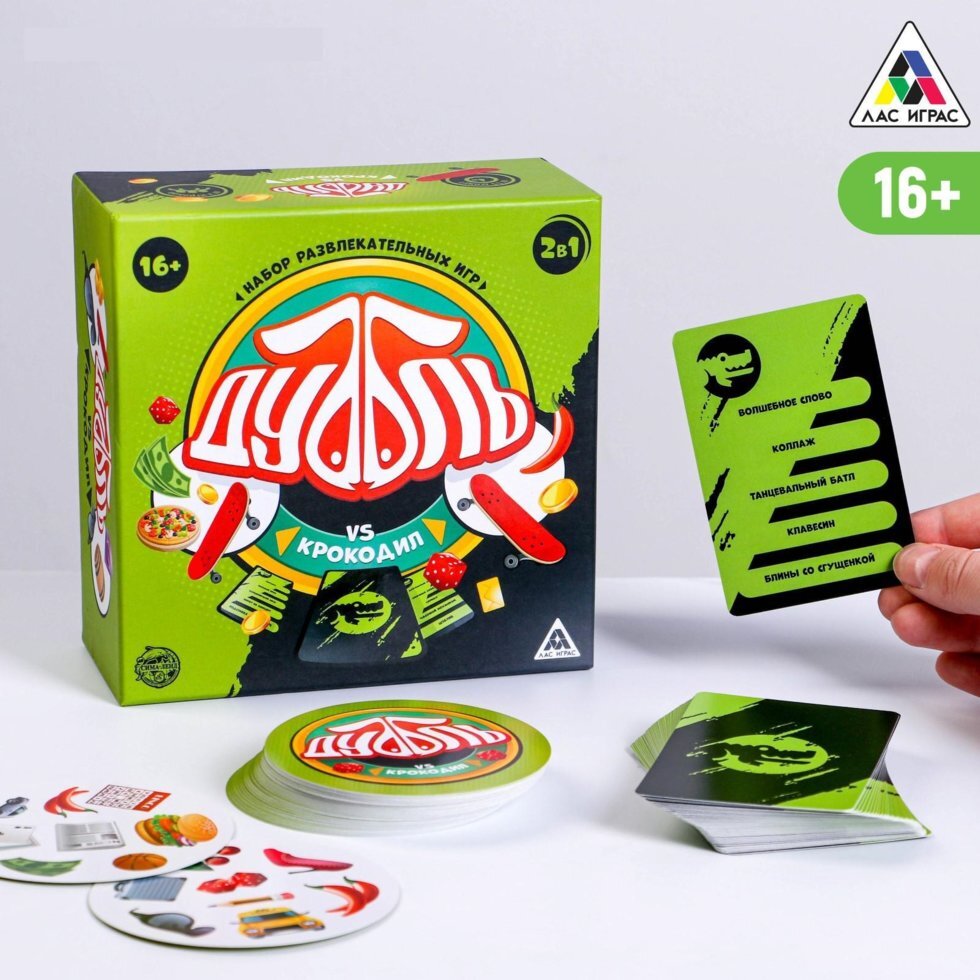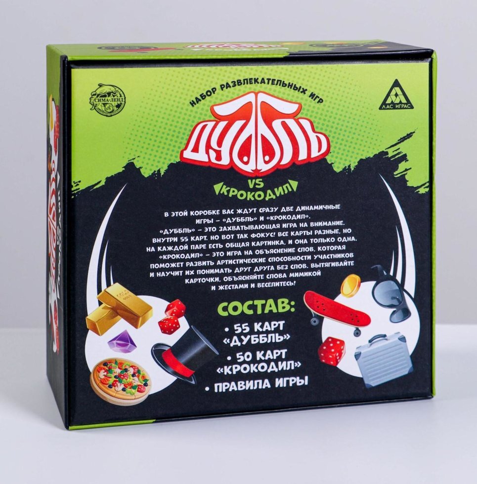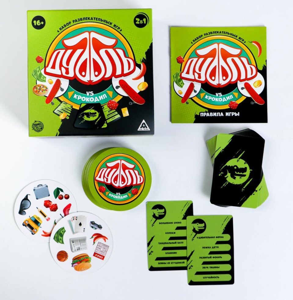 Со множеством современных гаджетов живое общение с родственниками и друзьями всё больше отходит на задний план. Но как же здорово увлечённо поиграть или вспомнить детство в весёлой и шумной компании! Набор развлекательных игр «Дуббль vs Крокодил» 2 в 1, 16+ поможет собрать вместе родственников и друзей, отложить в сторону все устройства и прекрасно провести досуг. У нас вы найдёте игры для людей разных возрастов и с разными предпочтениями.