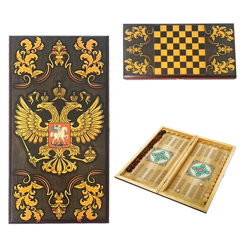 Деревянный короб для шашек и нард обычно выполнен из качественного дерева. Короб Украшен тематическим узором и другие декоративные элементы, что делает его не только функциональным, но и стильным аксессуаром.