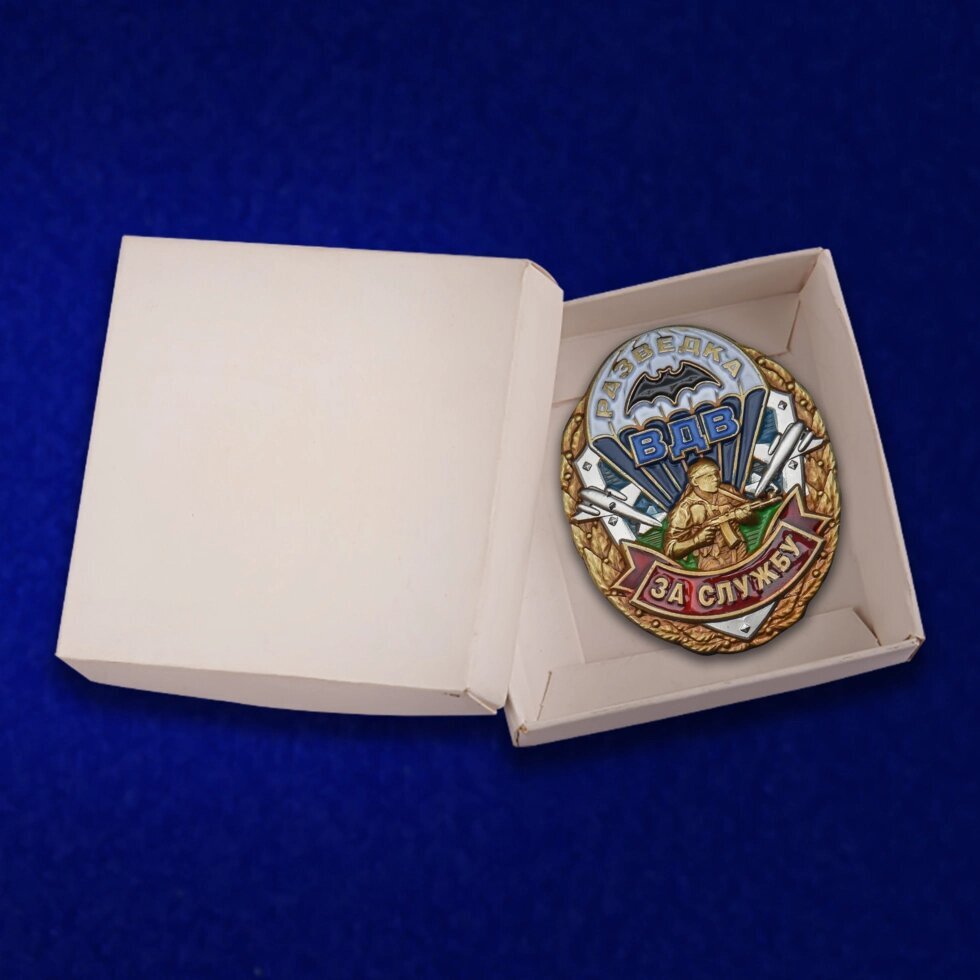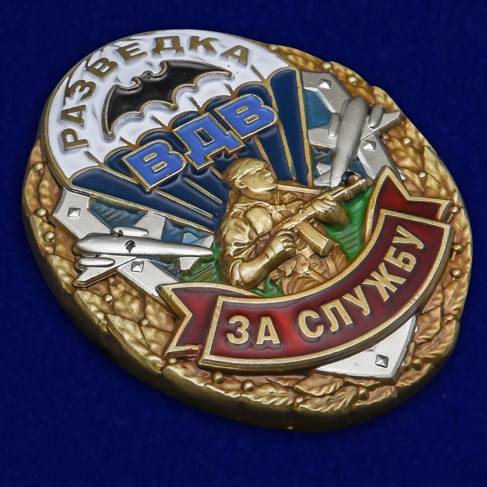 Купить знак "За службу в Разведке ВДВ" из латуни с эмалевым покрытием по лучшей цене можно с доставкой по стране и за рубеж. Крепление винтовое.
