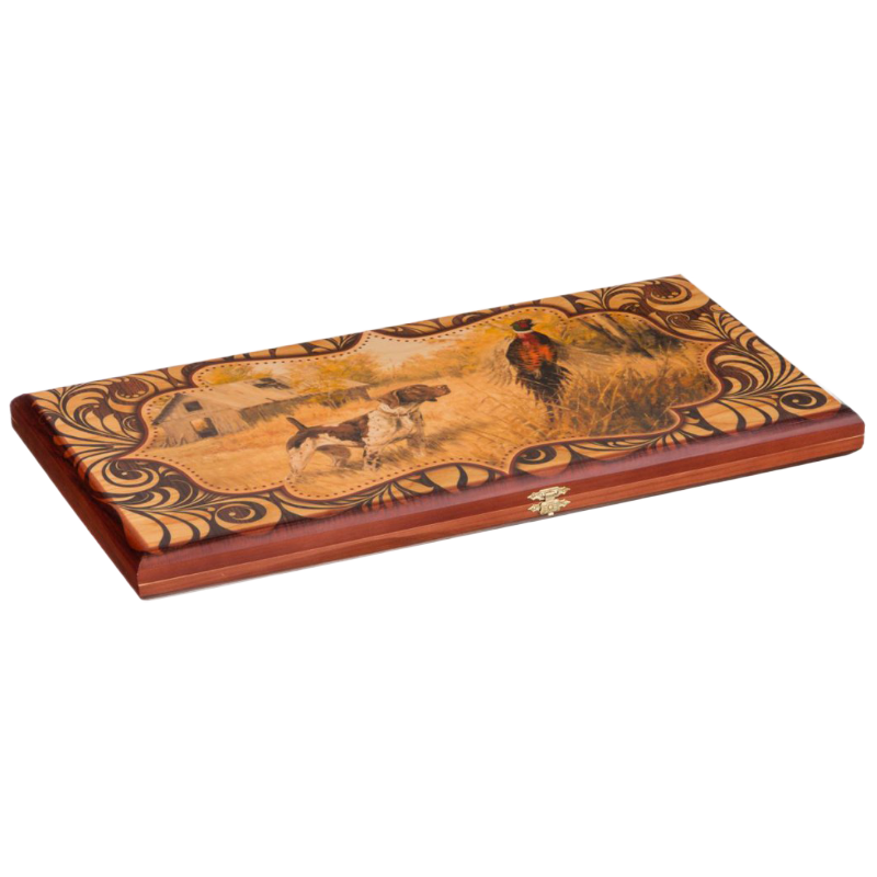 Игра нарды "Верный друг" средние SA-VD-M изготовлены из натурального дерева и представляют собой деревянный кейс с металлическими замками, размером 50 на 50 см в разложенном виде. Фишки также сделаны из дерева. Рисунок на нардах нанесен методом прямой печати по дереву. Внутренняя часть кейса - игровое поле для самой игры в нарды, одна из внешних сторон кейса - игровое поле для игры в шашки и шахматы.