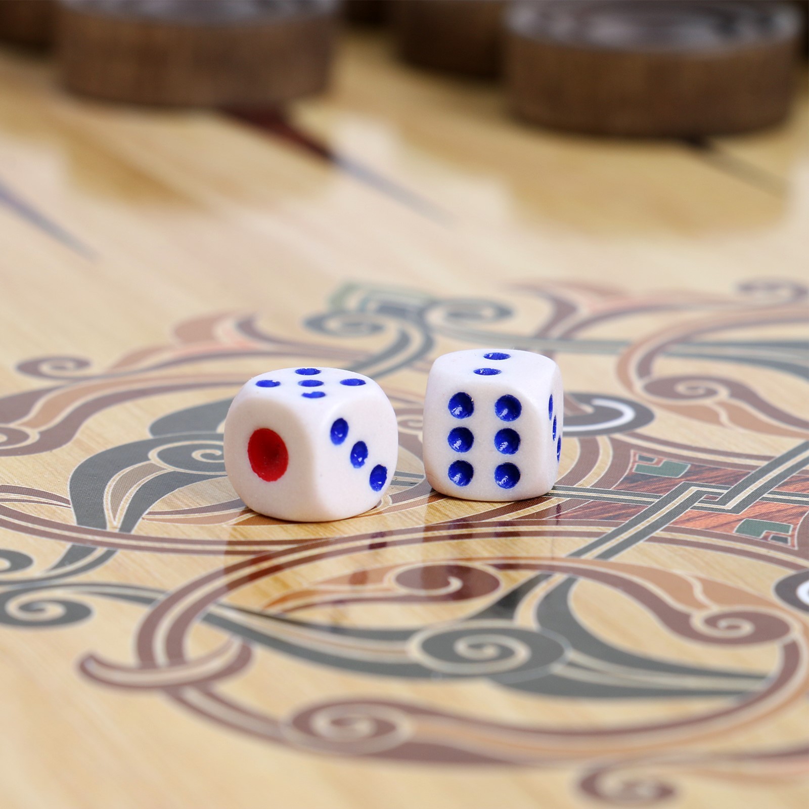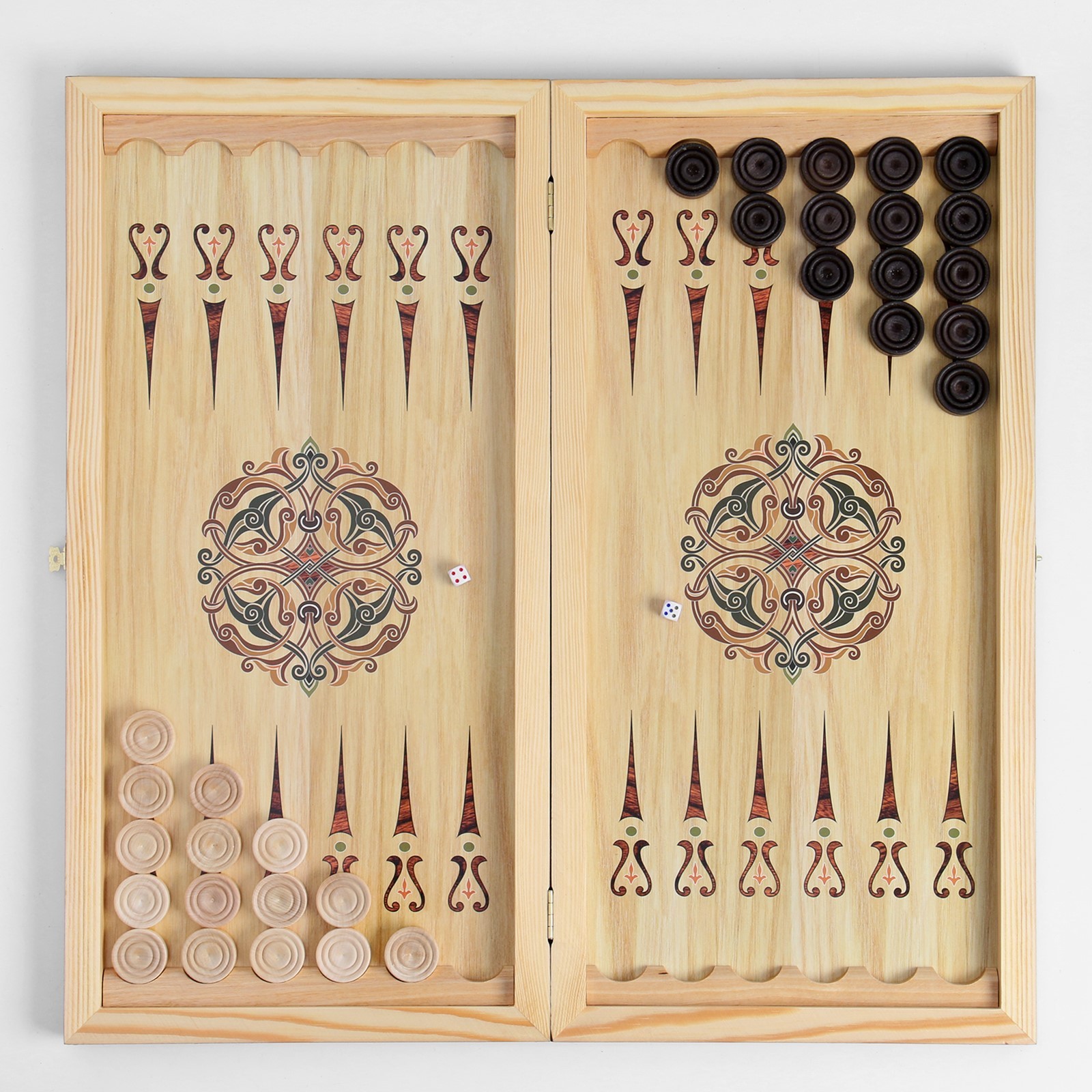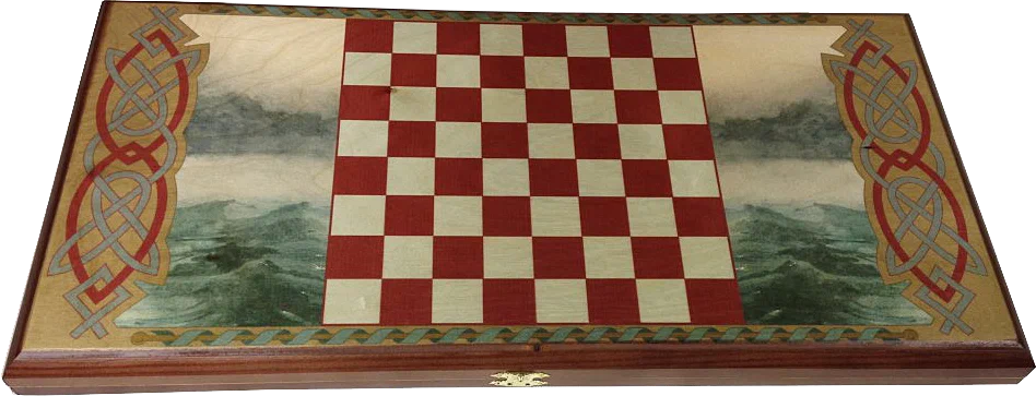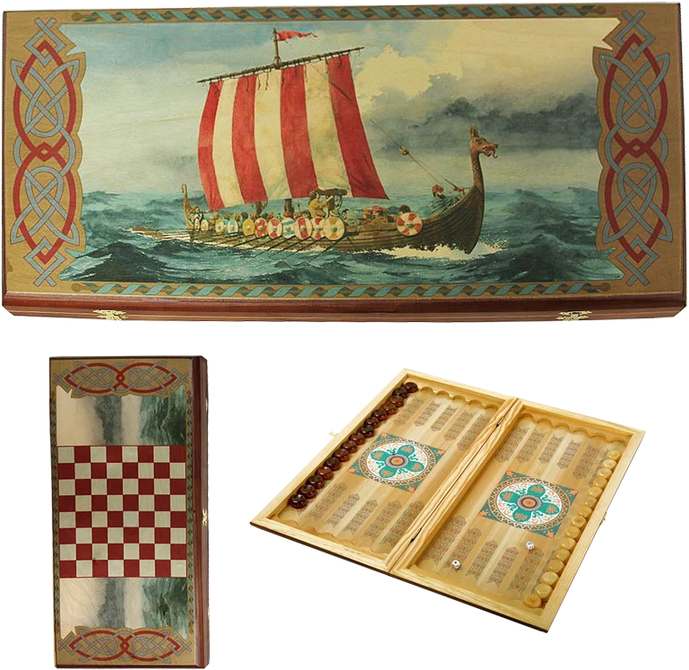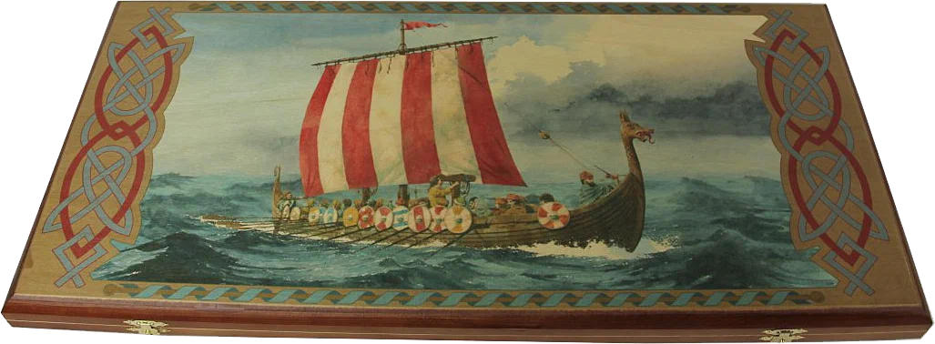 Игра нарды "Викинги" средние SA-VI-M изготовлены из натурального дерева и представляют собой деревянный кейс с металлическими замками, размером 50 на 50 см в разложенном виде. Фишки также сделаны из дерева. Рисунок на нардах нанесен методом прямой печати по дереву. Внутренняя часть кейса - игровое поле для самой игры в нарды, одна из внешних сторон кейса - игровое поле для игры в шашки и шахматы.
