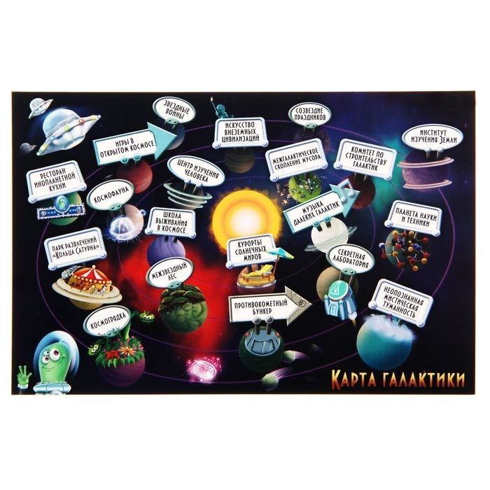 А как Капитан догадается, где похищенный? Для этого у него есть карта Галактики с названиями всех возможных локаций.