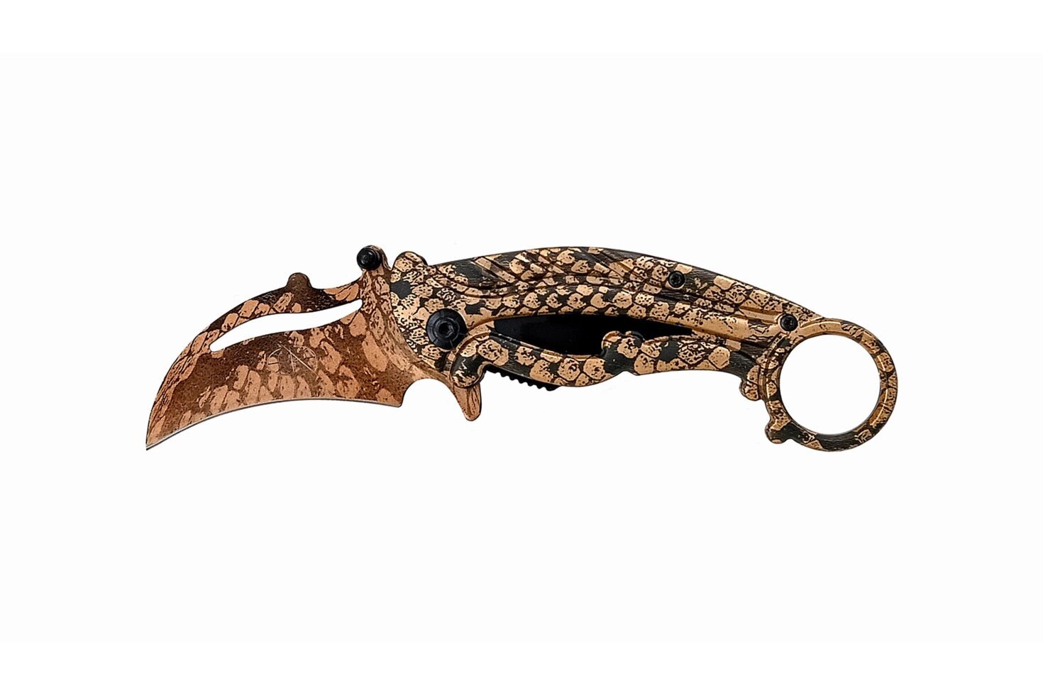 Керамбит HK03012 — нож с изогнутым клинком и заточкой, как правило, с внутренней стороны. Нож удерживают обратным хватом, продев указательный или большой(в одном из вариантов хвата — средний) палец в кольцо. Лезвие и остриё клинка ориентированы от себя.