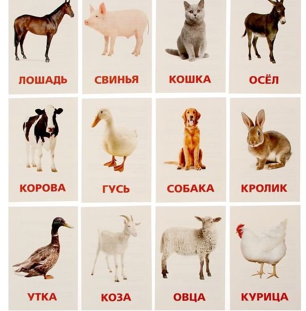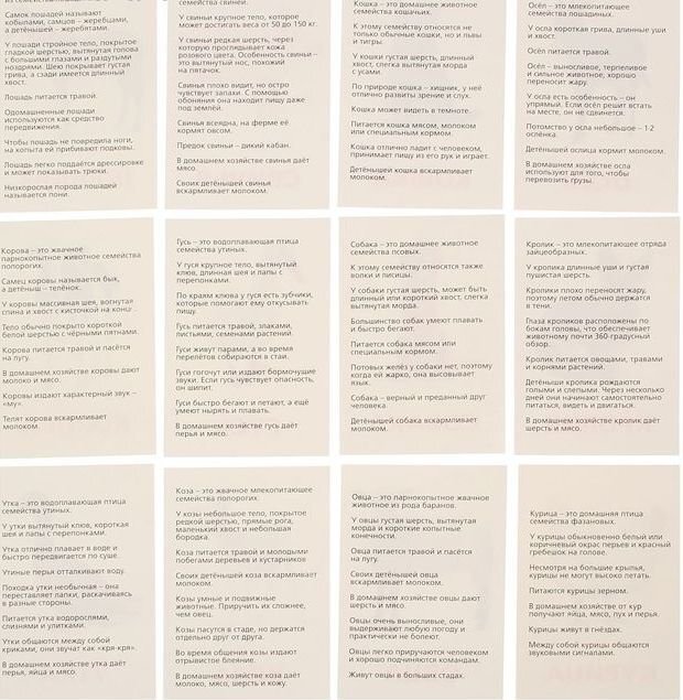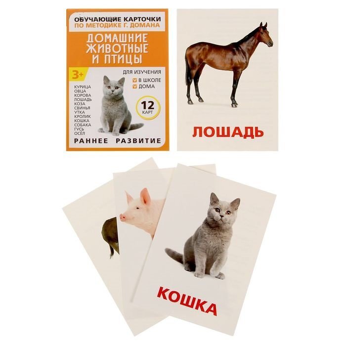 Обучающие карточки по методике Г. Домана "Домашние животные и птицы"