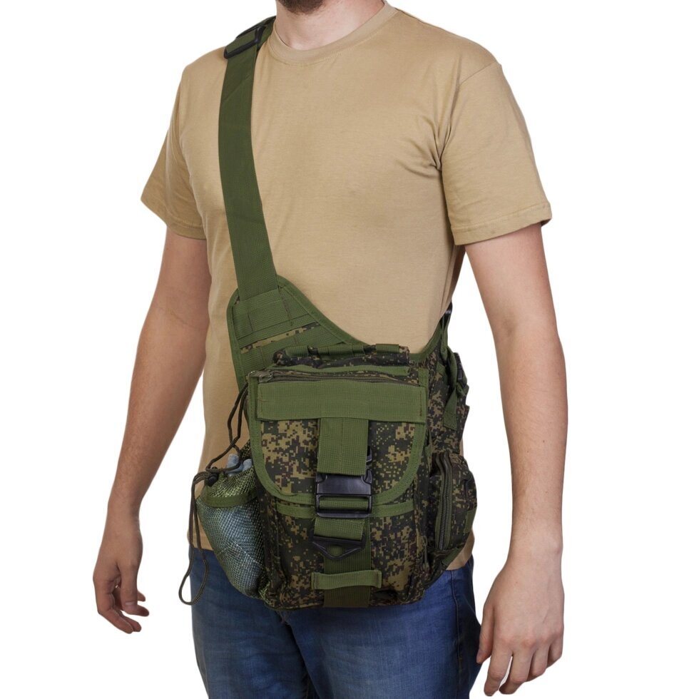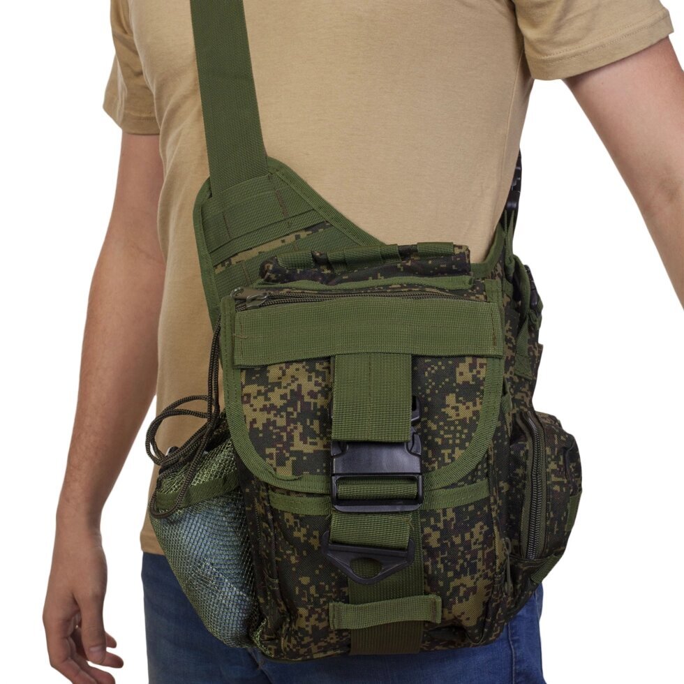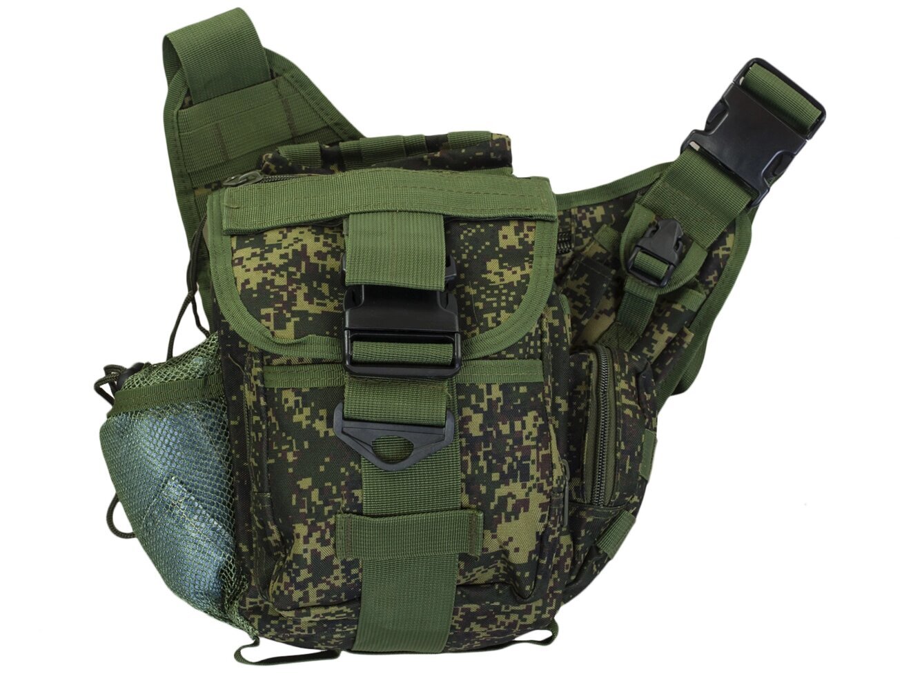 Однолямочная тактическая сумка (камуфляж Русская цифра) изготовлена из прочного материала, компактная но вместительная.