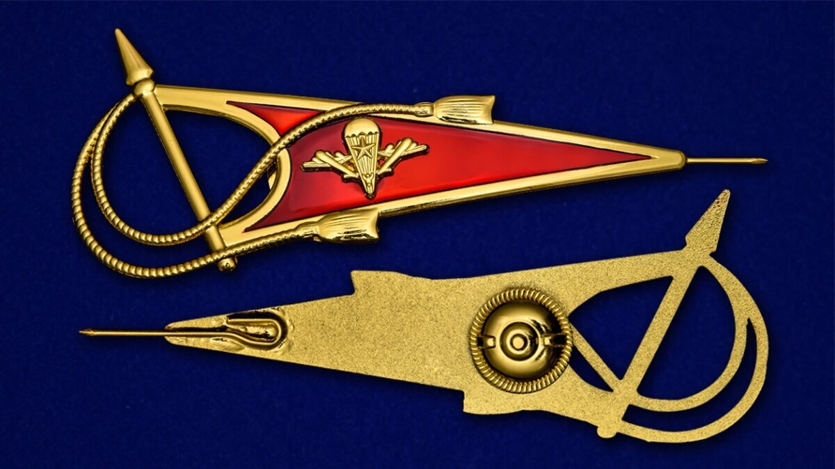 Околыш на берет десантника из латуни с красным эмалевым покрытием и эмблемой ВДВ.