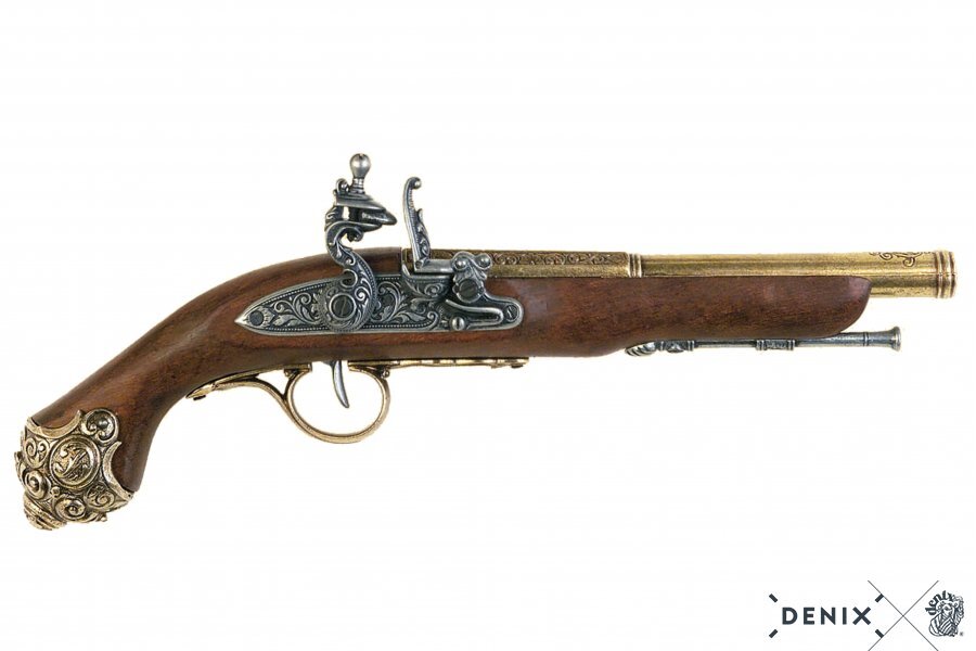 Пистоль ударный, 18 век DE-1077-L испанского производителя Denix действительно станет великолепным приобретение для коллекционера декоративных пушек и пистолей. Создание точной копии настоящего боевого пистоля требует мастерства и внимания к деталям, что делает его еще более ценным для коллекции.