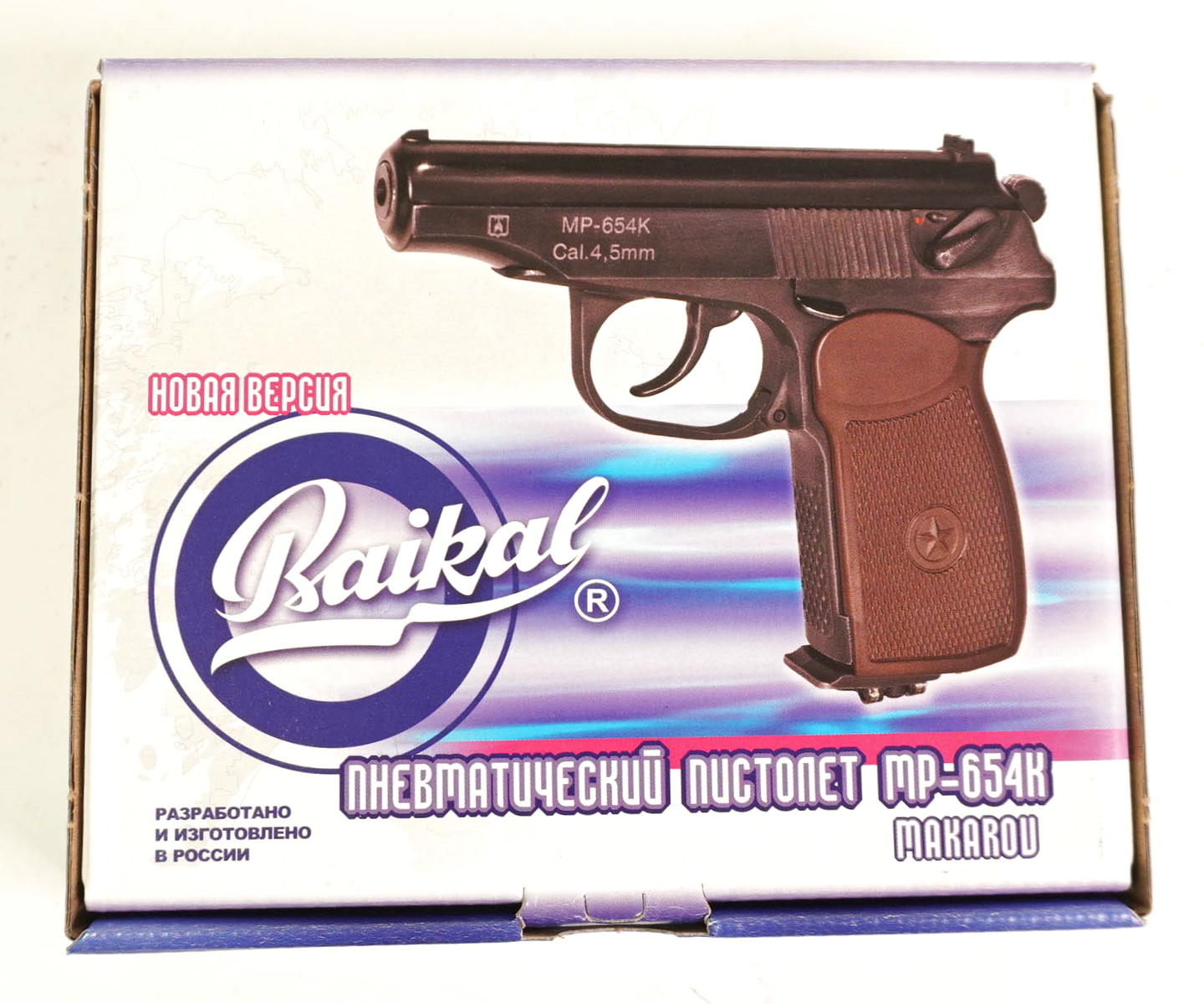 Пневматический пистолет Байкал МР-654К-20 представляет собой одну из наиболее ранних газобаллонных копий пистолета Макарова. Пистолет много лет производят на Ижевском механическом заводе, на котором ранее производились боевые пистолеты Макарова, что позволило максимально приблизить внешний вид пневматического пистолета к боевому экземпляру.